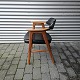 Beskrivelse: Armstol med stel i teaktræ og letpolstret ryg og sæde betrukket med sort nappa