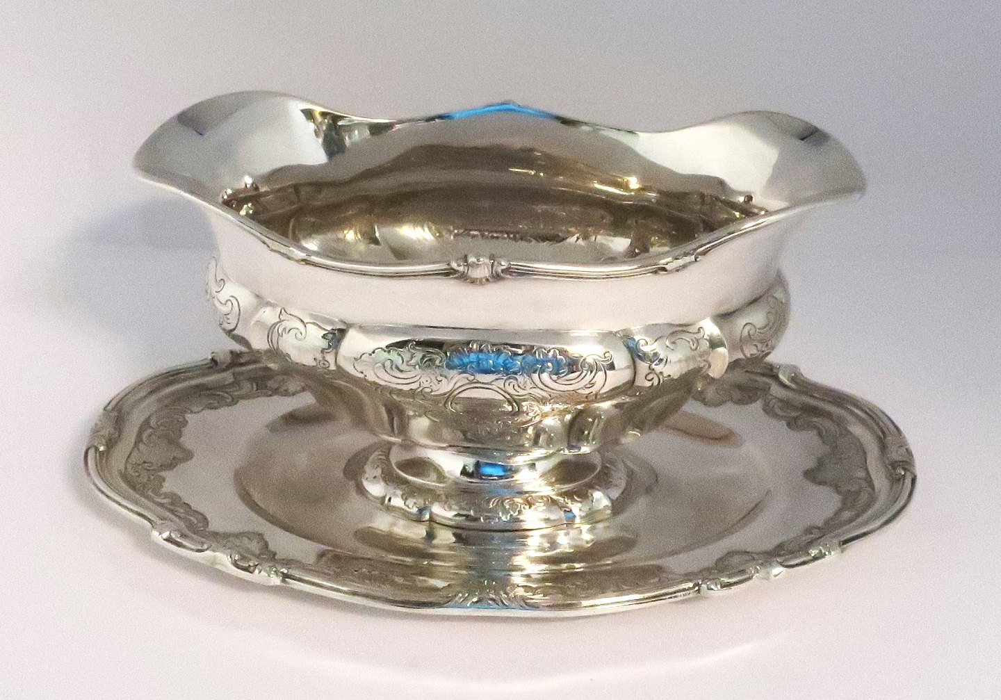 Description: Michelsen. Sterling silver sauce bowl (925). Rosenborg. Length 23 cm. Produced 1931.