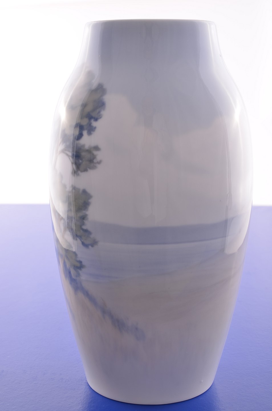 Beskrivelse: Bing & Grøndahl vase med landskabsdekoration. B&G porcelænsvase nr. 8528/243. Højde 24,5 cm. 2. Sortering, fin hel stand. Fra perioden 1915-1948.