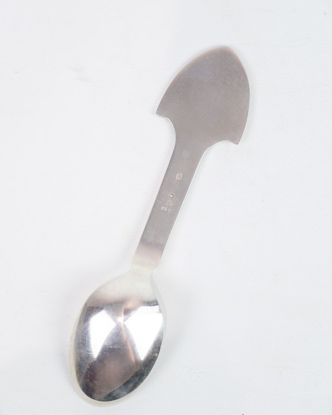 Beskrivelse: Denne juleske fra 1950 er fremstillet af Grann & Laglye i København og udført i sterling sølv. Skeen er dekoreret med et motiv, der forestiller Jomfru Maria med Jesusbarnet, omgivet af stjerner og skyer, hvilket afspejler julens religiøse symbolik. Med sin detaljerede emaljearbejde er skeen et fint eksempel på dansk sølvhåndværk fra midten af det 20. århundrede. Grann & Laglye er kendt for deres unikke designs, og denne juleske er en eftertragtet genstand for samlere af julebestik og dansk design.
