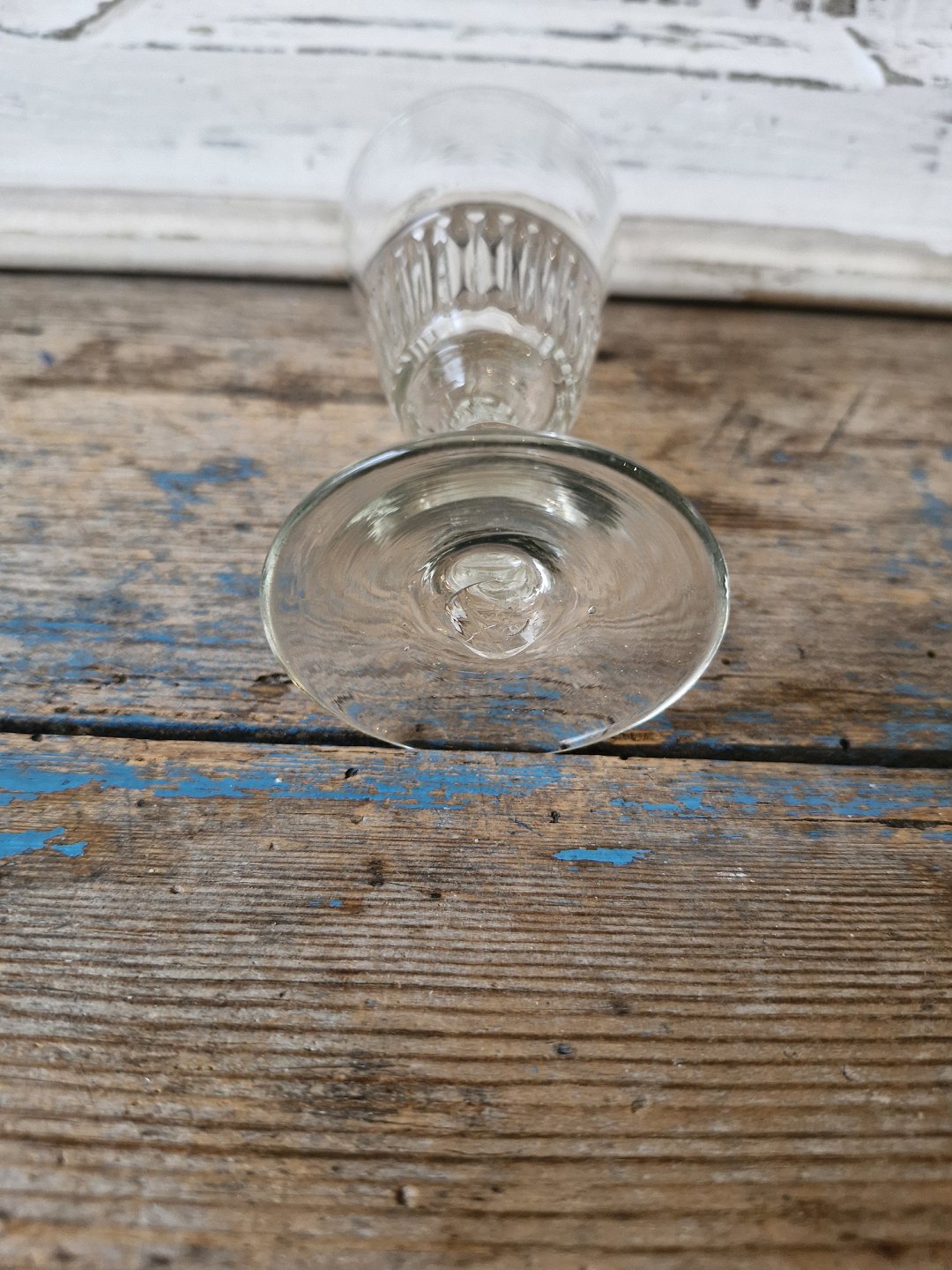 Beskrivelse: 1800 tals vinglas på stilk med knap, fastblæst kumme med riflet underdel