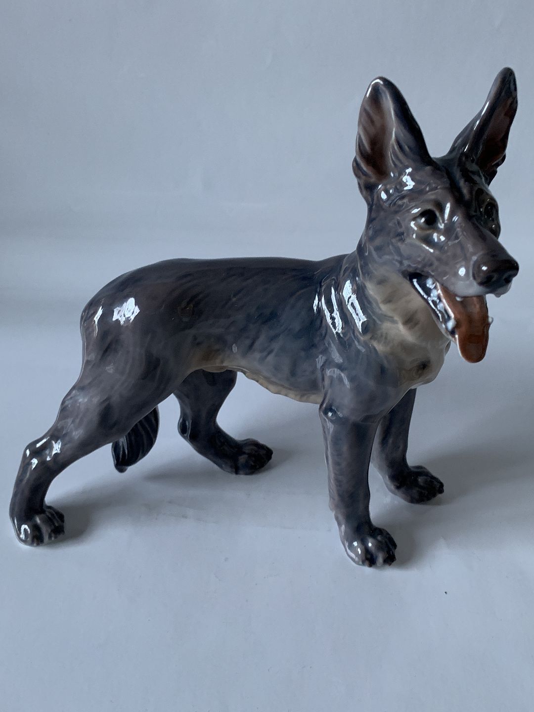 Beskrivelse: Stor Dahl Jensen hunde figur, stående schæfer.