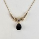Beskrivelse: Halskæde i sterling sølv med sort glas vedhæng og klare sten.