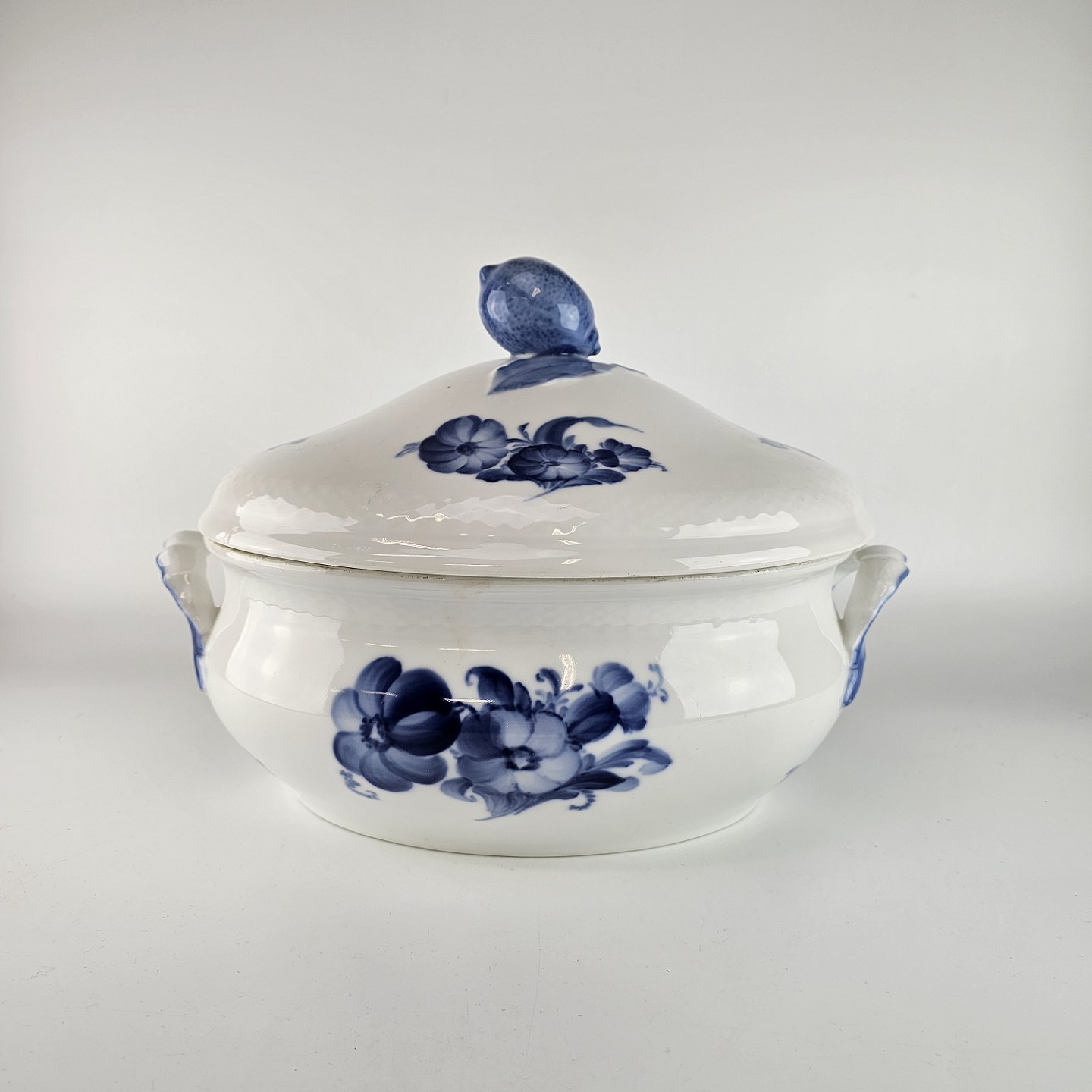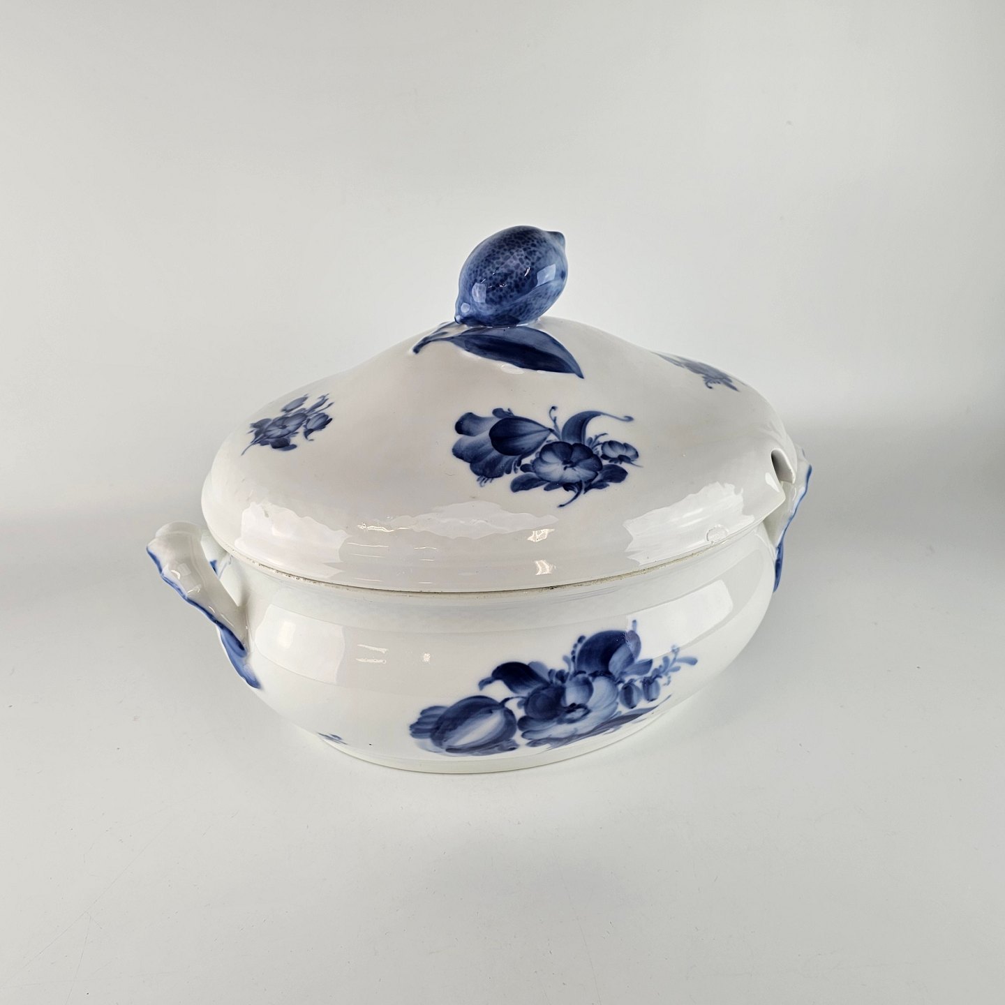 Beskrivelse: Ovalt lågfad i kongelig porcelæn fra stellet Blå Blomst. Nr 10/8134.