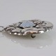 Beskrivelse: Broche i sølv udformet i skønvirke stil dekoreret med lyseblå og rød sten