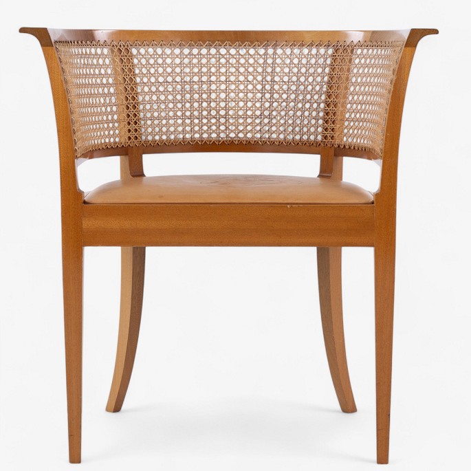 'Faaborg'-stol i mahogni med sæde i patineret naturskind.