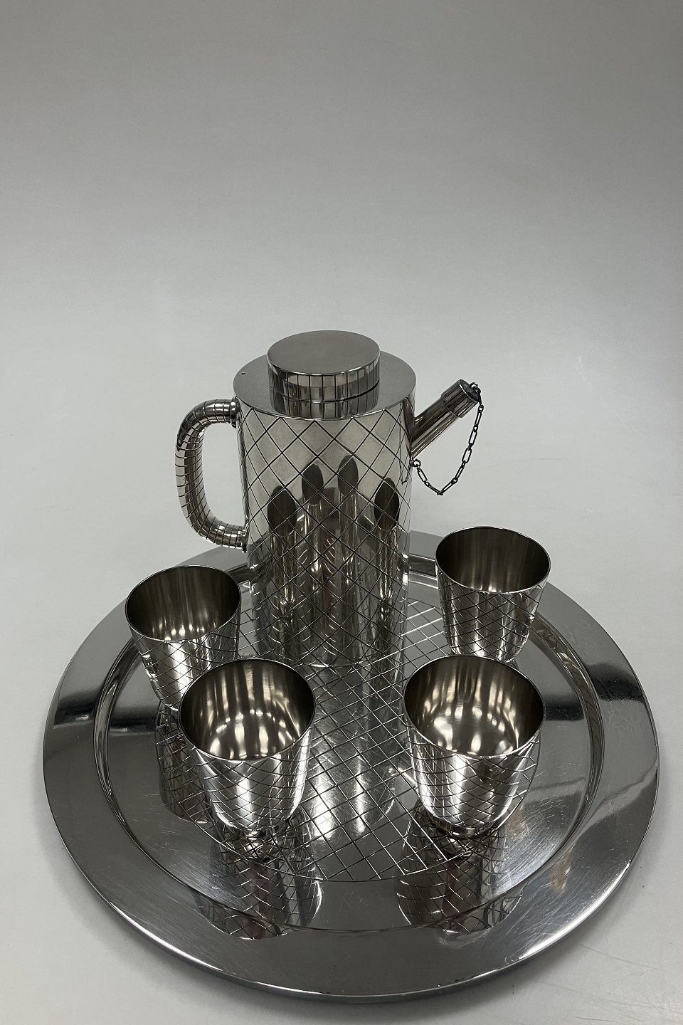 Beskrivelse: Georg Jensen Sterling Sølv Cocktail Shaker, Bakke og Bægre No. 819