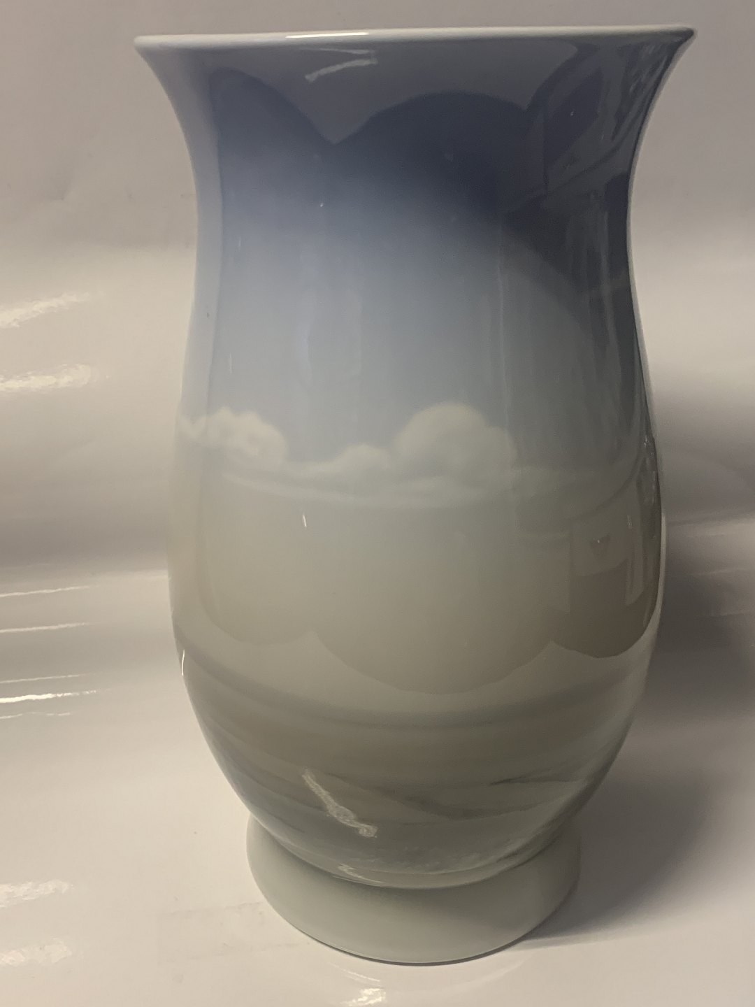 Description: Large Bing & Grondahl vase with Danish windmill. The vase is decorated all the way around.