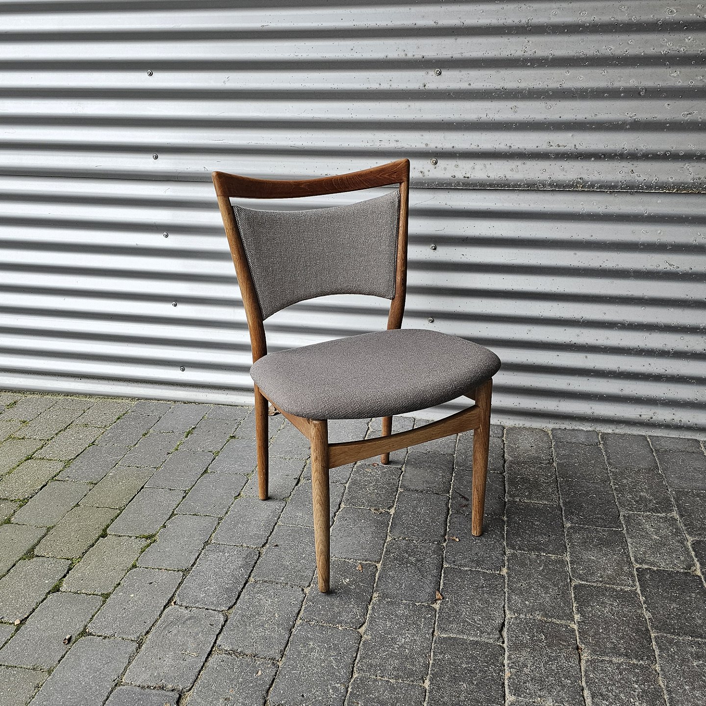 Beskrivelse: Sæt med seks spisebordsstole, model 86, nypolstrede med hallingdal.