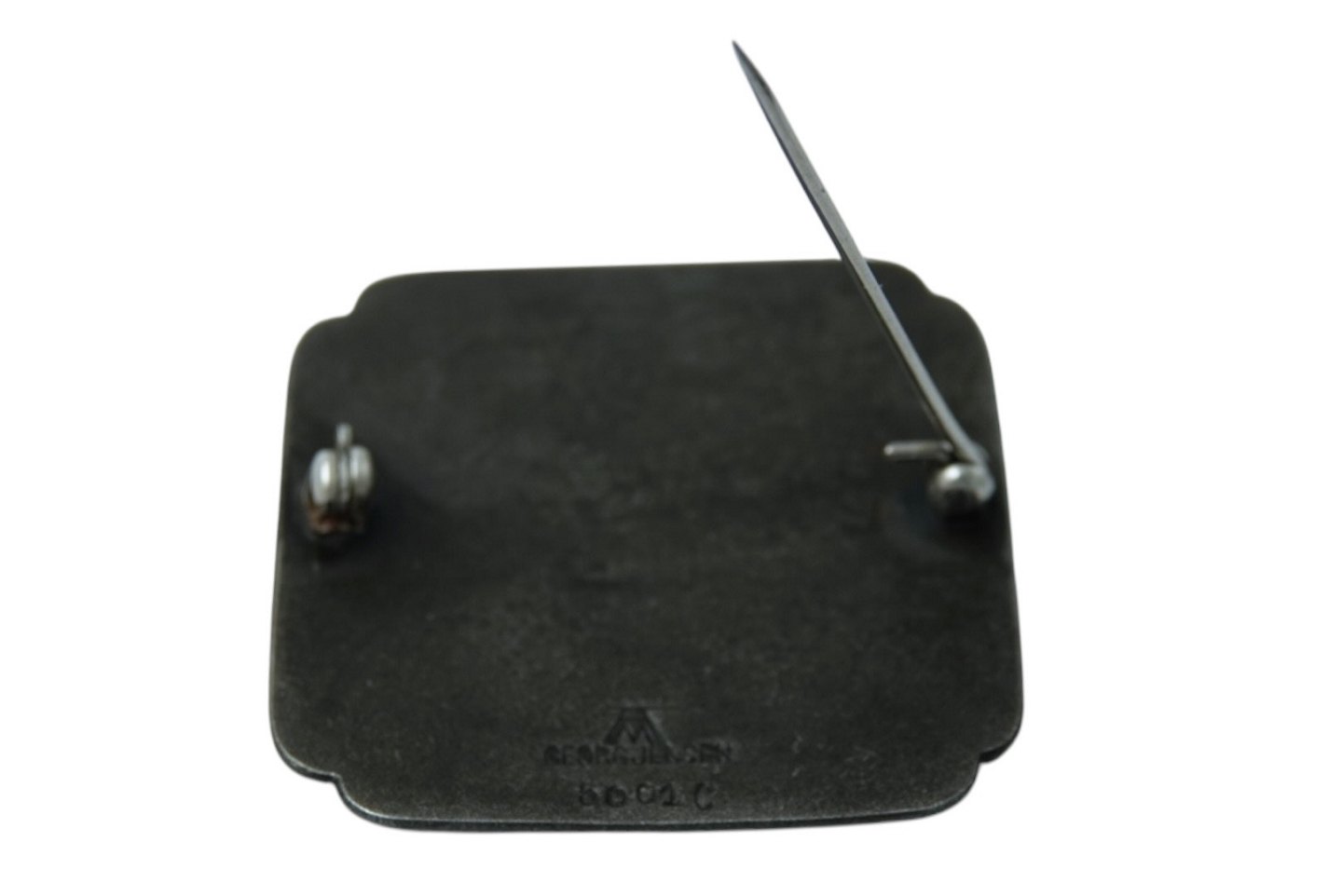 Beskrivelse: Georg Jensen mørk firkantet broche i jern og lidt sølv.