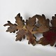 : Pibeophæng i mørkt træ, med motiv af grene og blade.