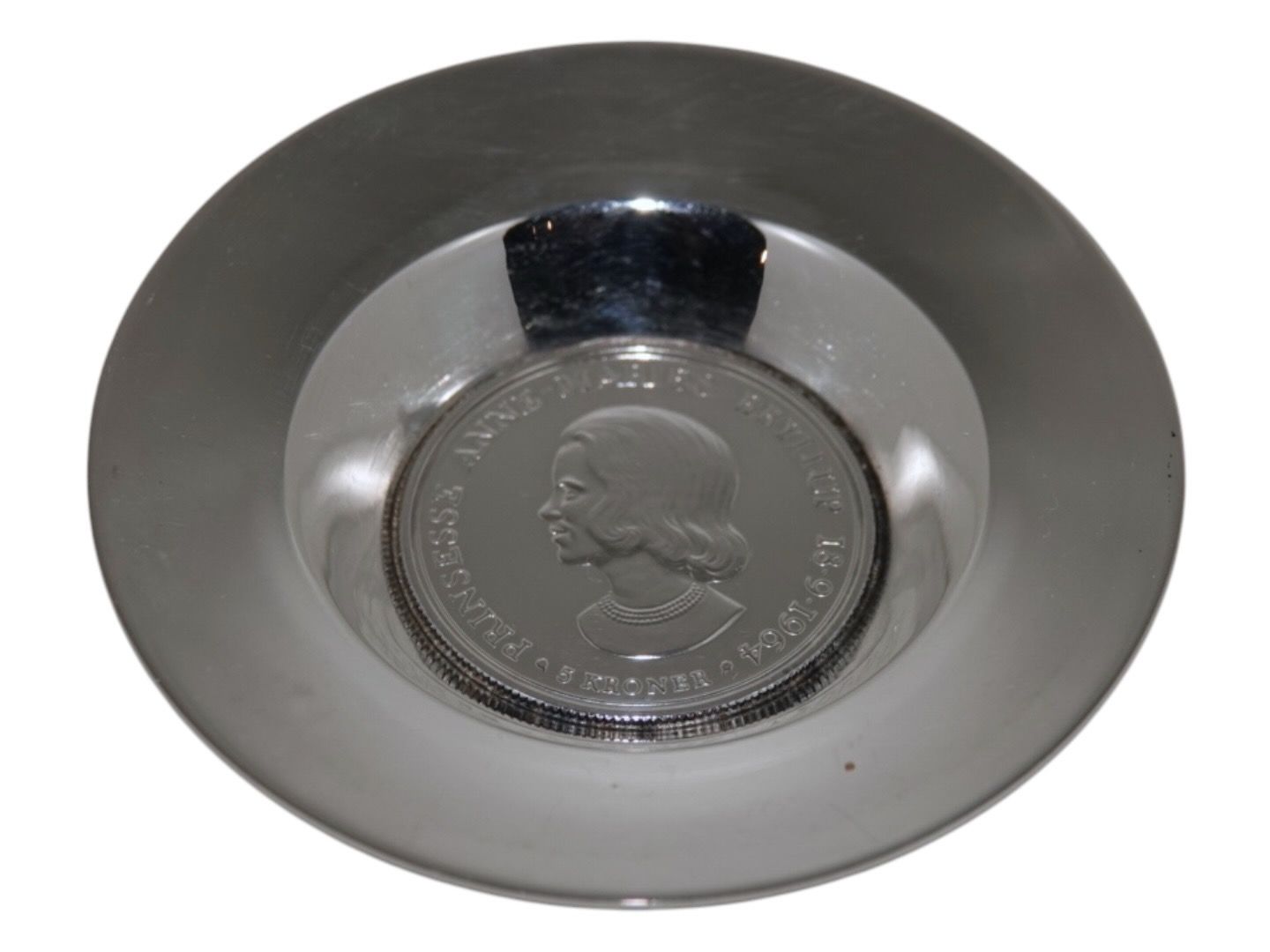 Description: Peter Hertz sterling silver, small dish with Danish commemorative coin from 1964.