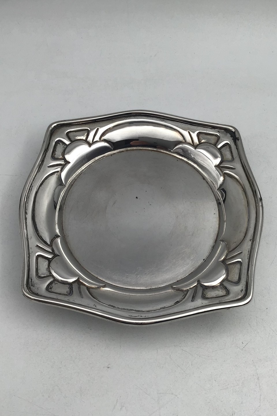 : Cohr Sølv Flaskebakke Måler 14 cm x 14 cm (5.51 inch x 5.51 inch) Kuglefødder (Brugsspor / Gravering)