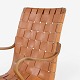 Tidlig udgave af 'Eva' lænestol i patineret bøg m. flettede gjorde i natur kernelæder. Mærket fra producent.