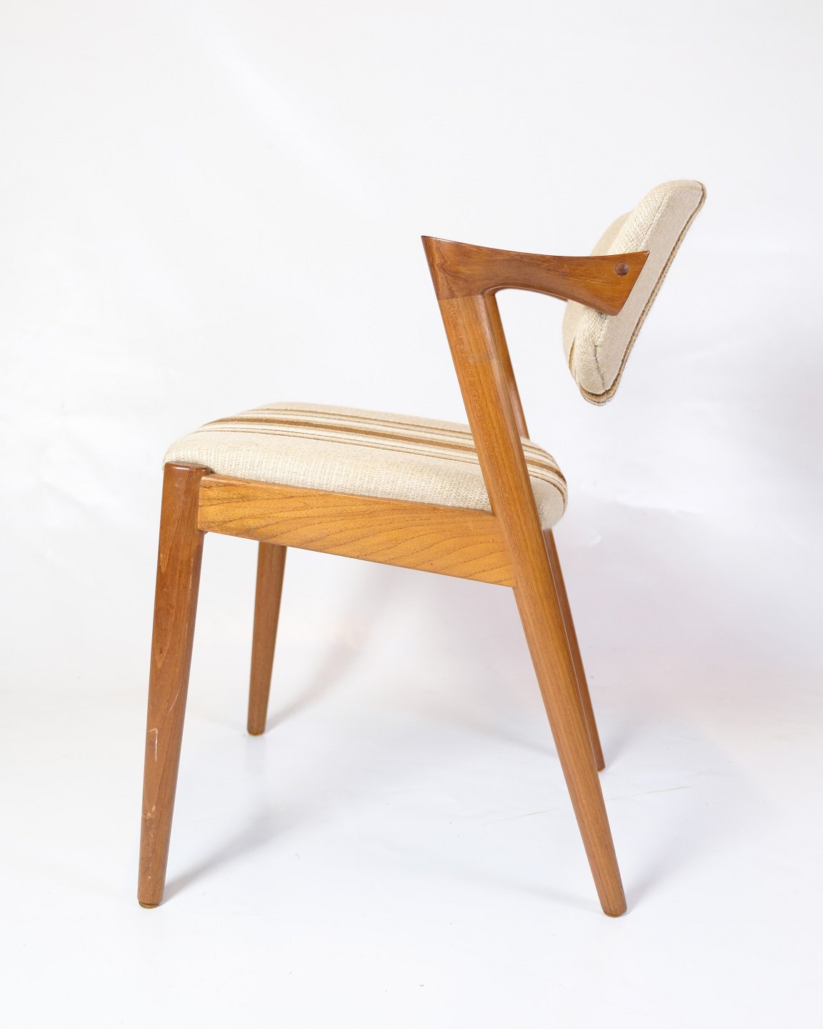 Sæt Af Seks Spisebordsstole - Model 42 - Teak - Lyst polstret Stof med Striber - Kai Kristiansen - Schou Andersen - 1960erne