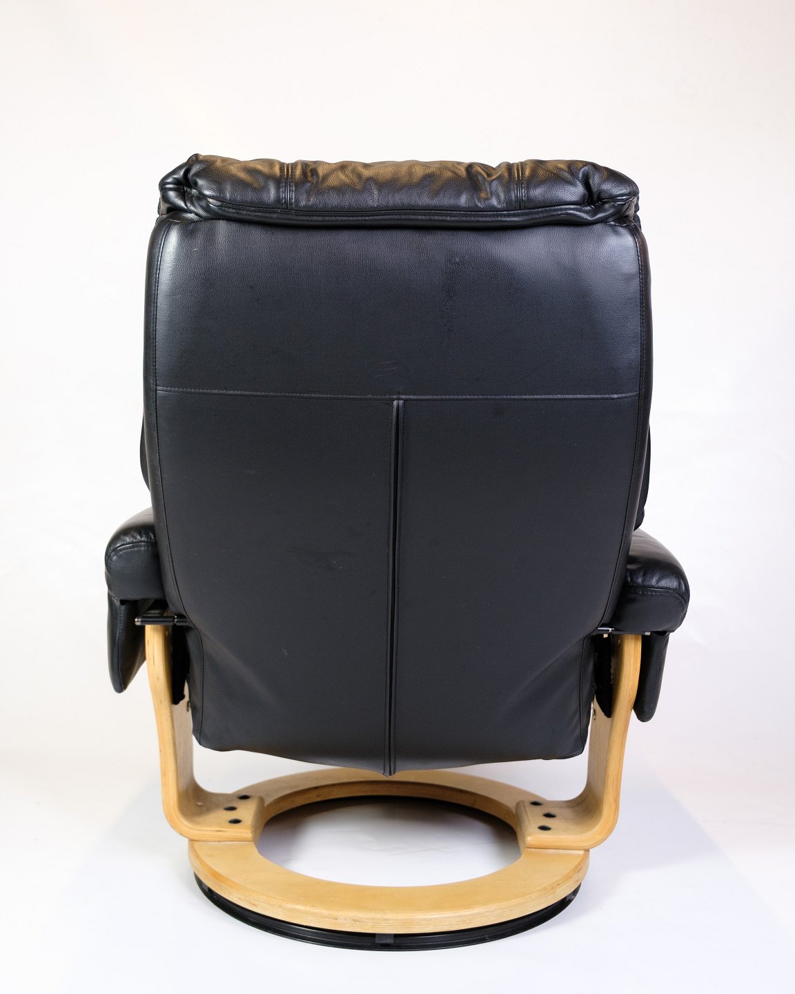 Sæt Af To Lænestole Med Fodskammel - Formbøjet Bøg - Sort Læder - Skandinavisk Design