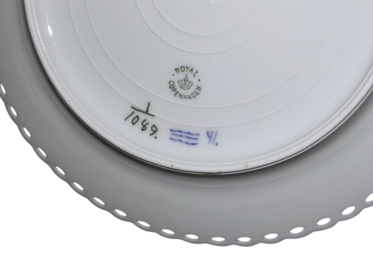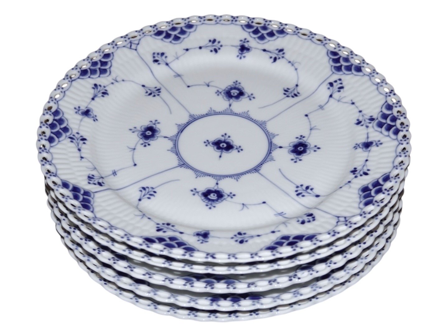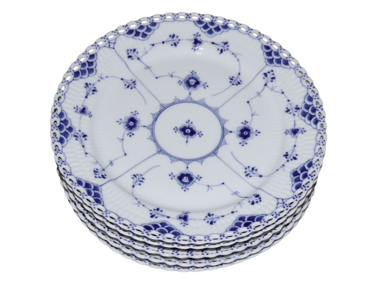 Beskrivelse: Royal Copenhagen Musselmalet Helblonde, sjælden ekstra flad middagstallerken.