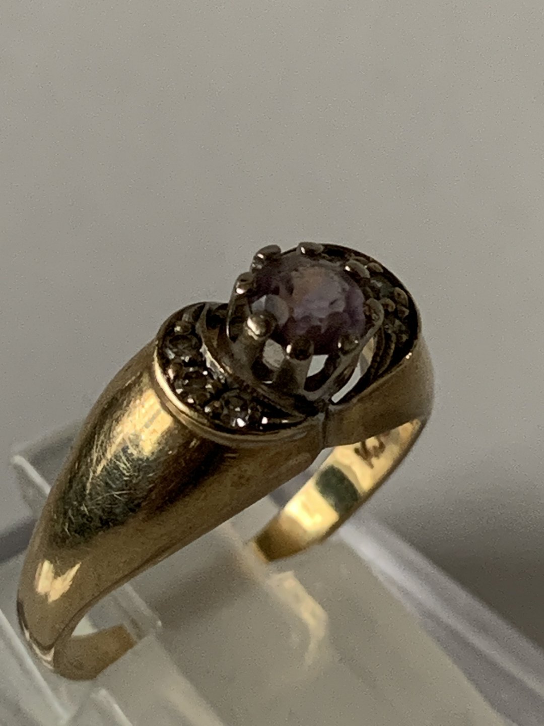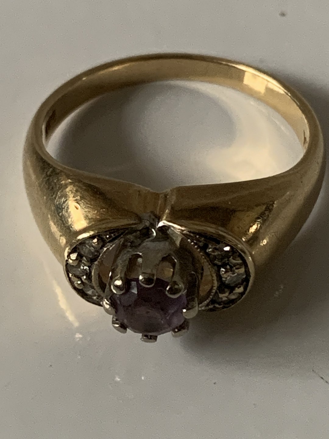 Beskrivelse: Guldring med Ametyst og Brillanter 14 karat