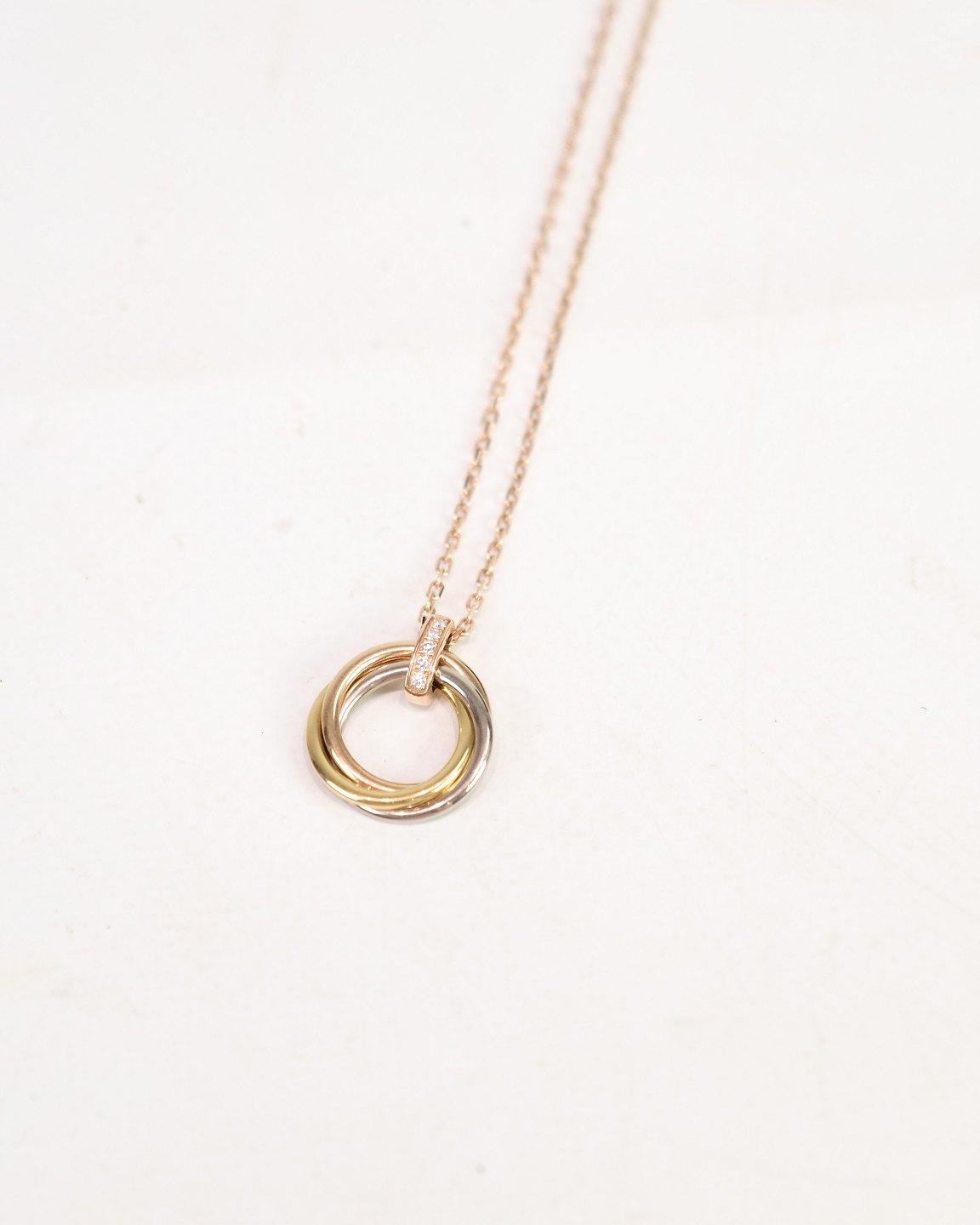Cartier "Trinity" Necklace 18kt. Rose Gold 3-Tone Pendant Brilliant Cut Diamonds