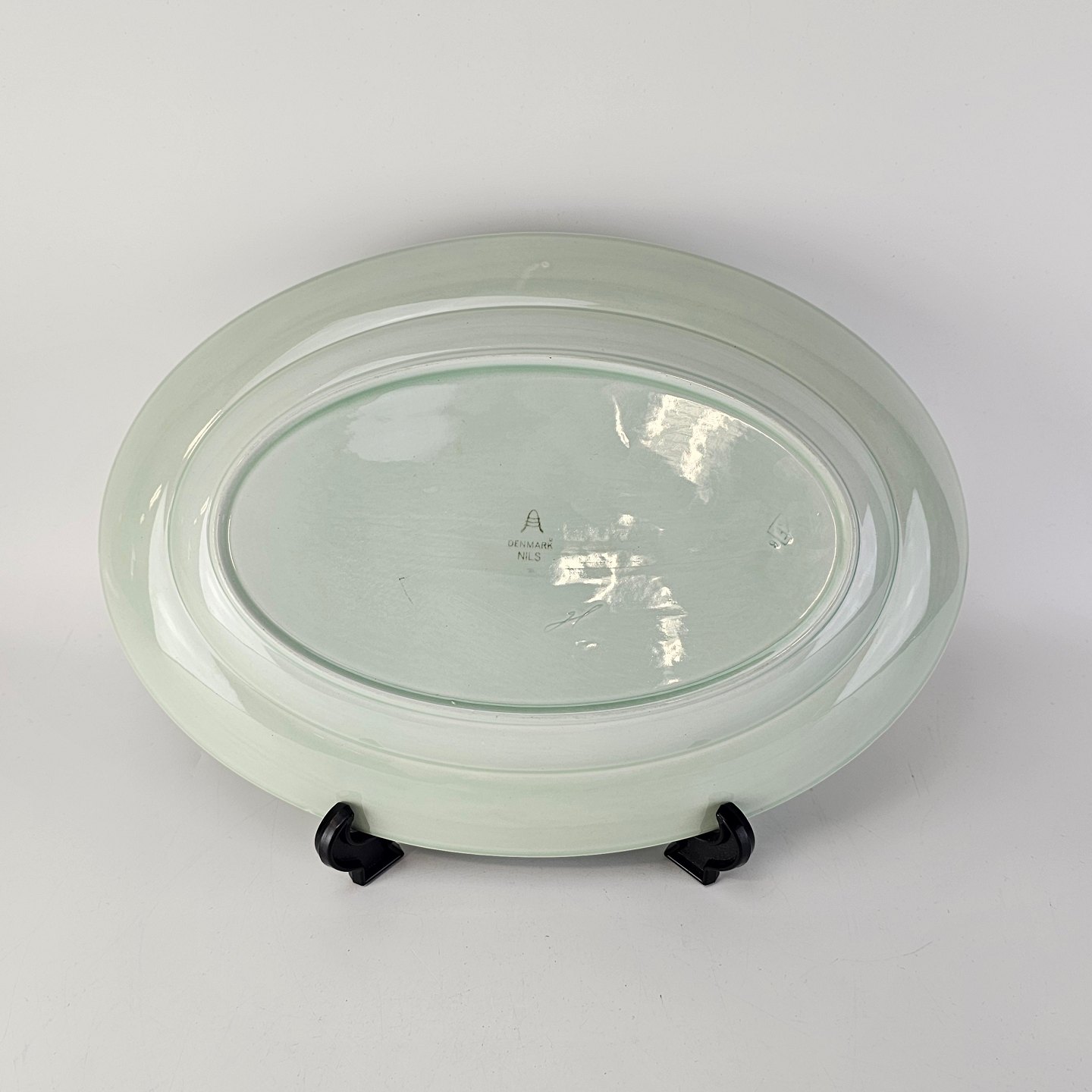 Beskrivelse: Ovalt fad i fajance fra stellet Nils