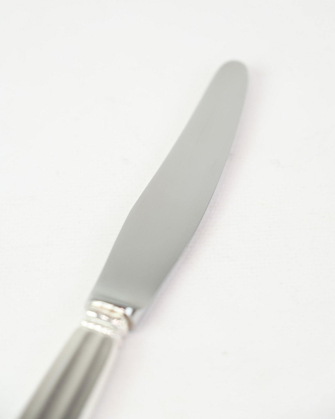 Description: Georg Jensen silver lunch knife, King pattern. Designed by Johan Rohde in 1915. Length 20cm. Classic Danish silverwork.