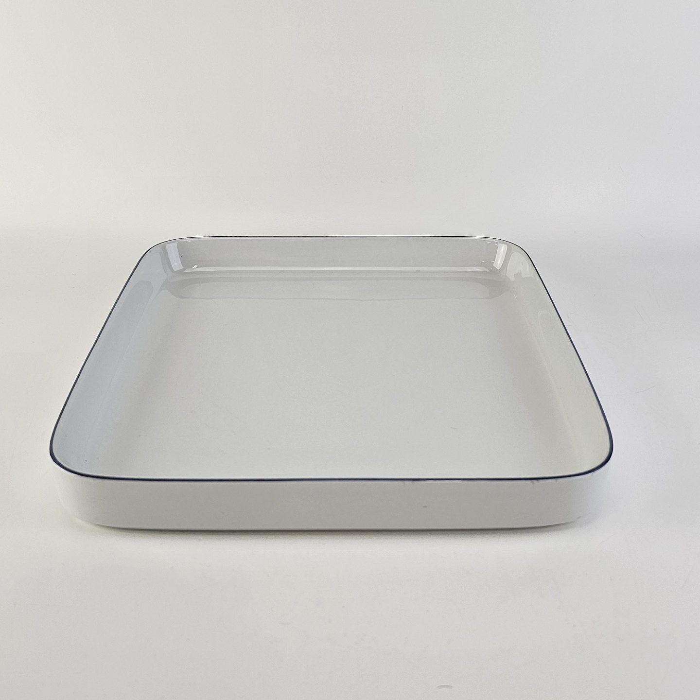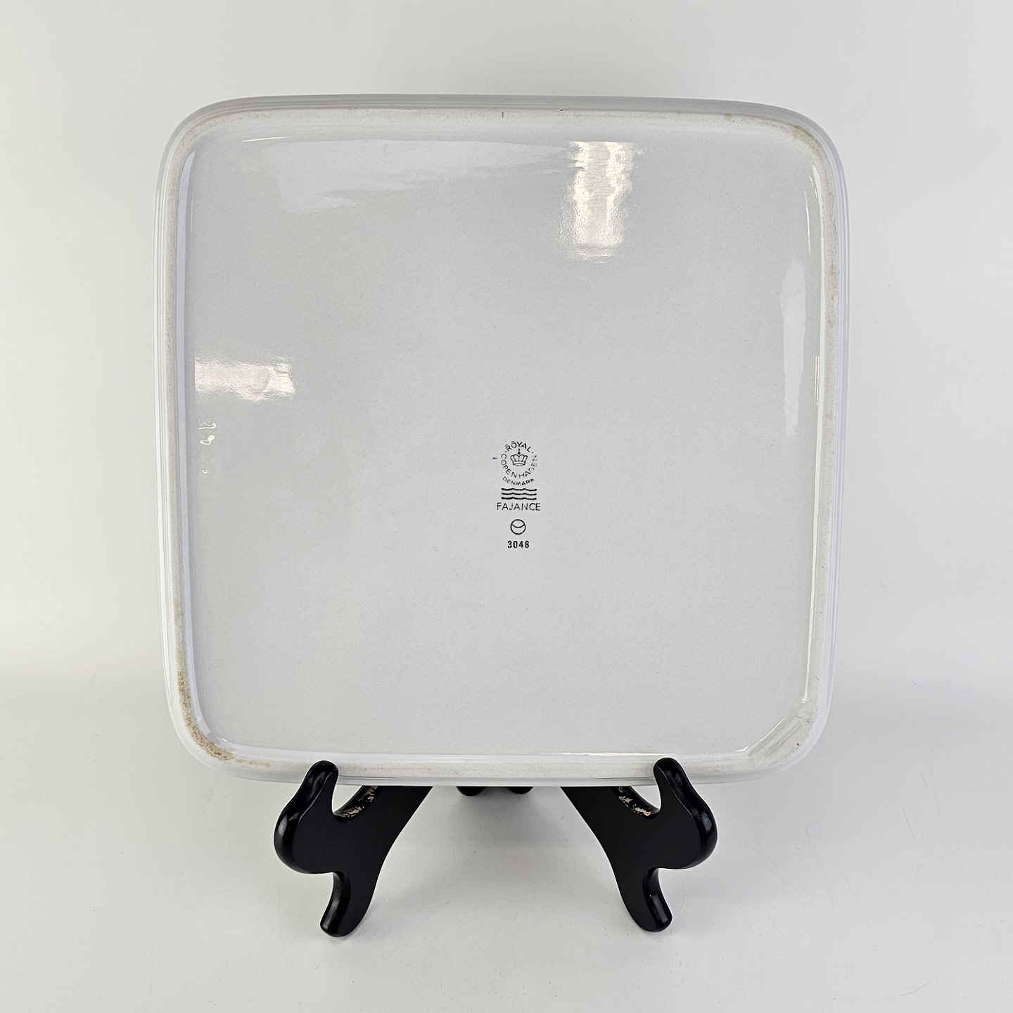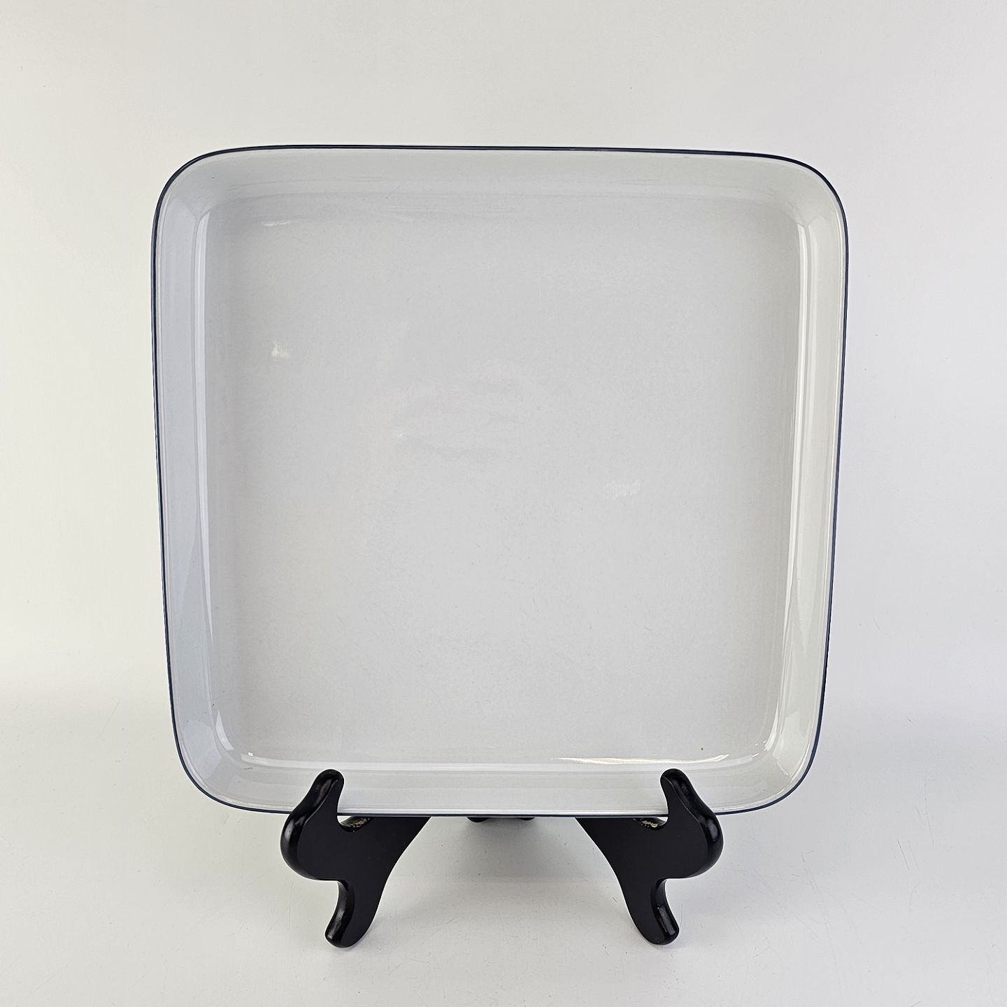 Beskrivelse: Kvadratisk fad i fajance fra stellet Blåkant