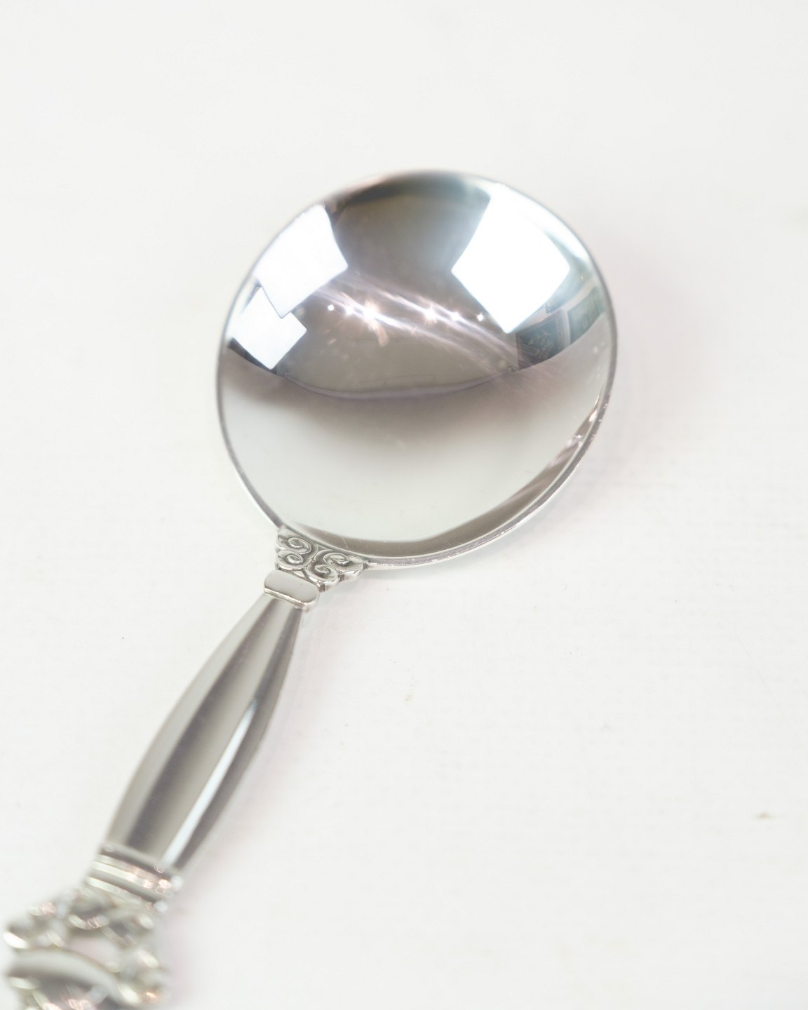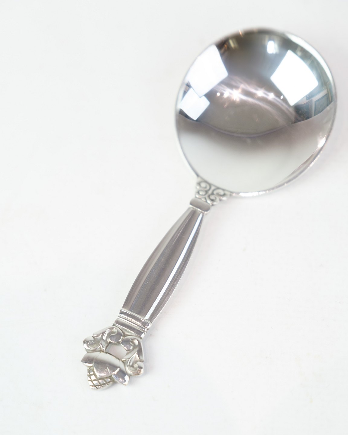 Description: Georg Jensen Sugar Spoon in silver, King pattern. Designed by Johan Rohde in 1915. Length 25 cm. Classic Danish silverwork.