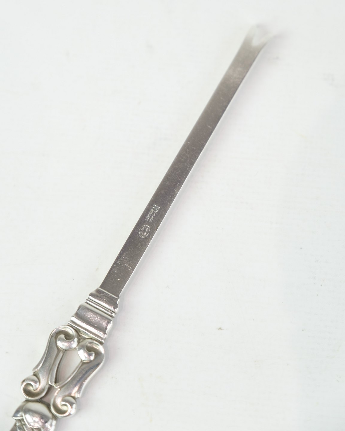 Beskrivelse: Georg Jensen Hummergaffel i sølv, mønster Konge. Designet af Johan Rohde i 1915. Længde 19cm. Klassisk dansk sølvarbejde.