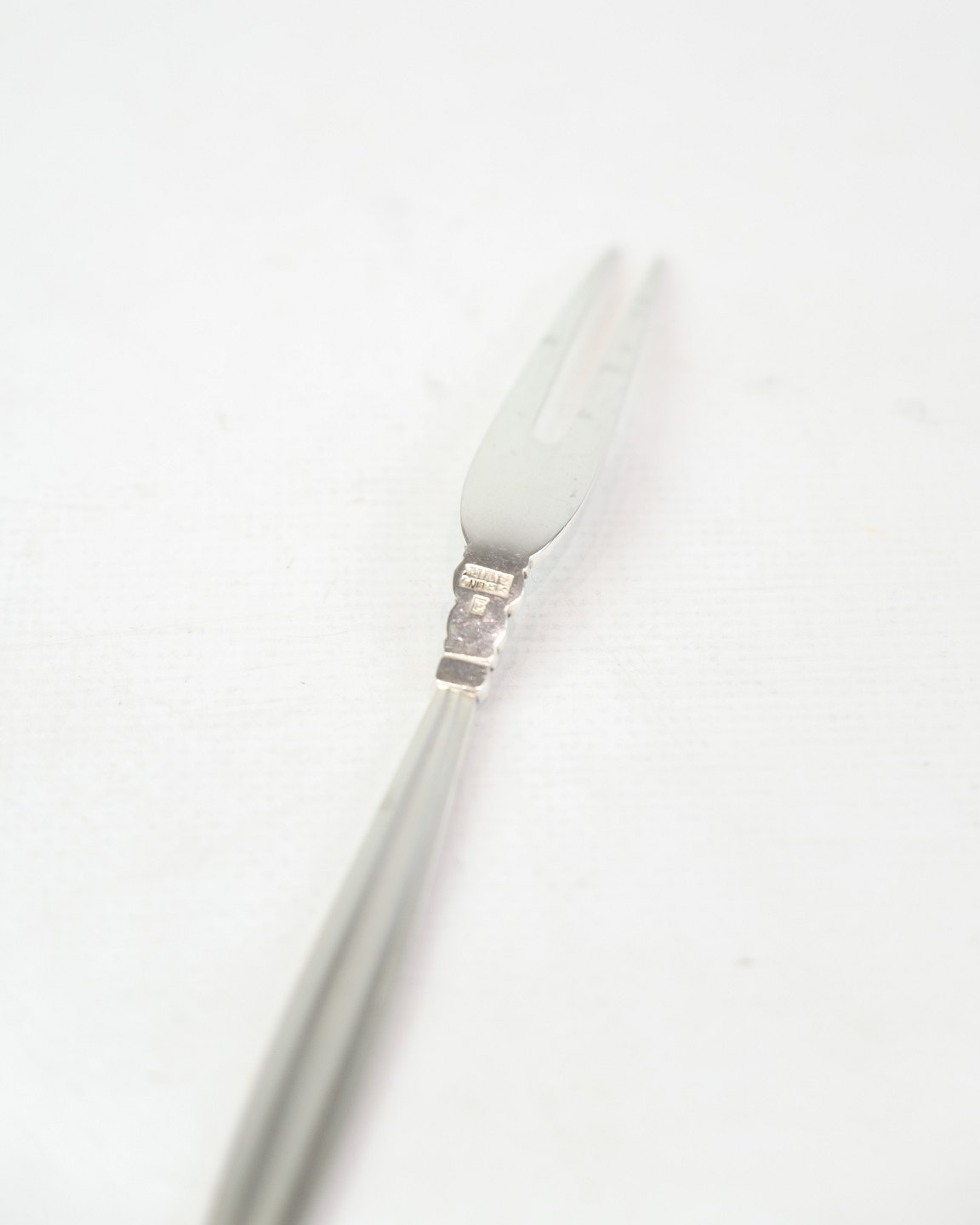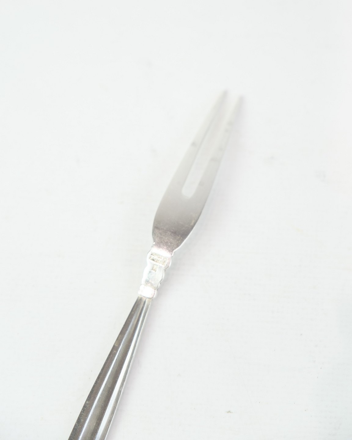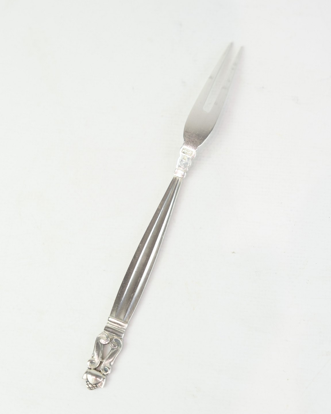 Description: Georg Jensen cold cuts/roasting fork in King pattern. Sterling silver, design by Johan Rohde 1915. Length 16.5 cm.