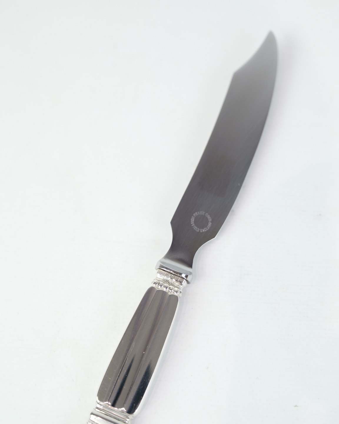 Description: Georg Jensen cheese knife in Konge pattern. Sterling silver, design by Johan Rohde 1915. Model No. 221. Length 20 cm.