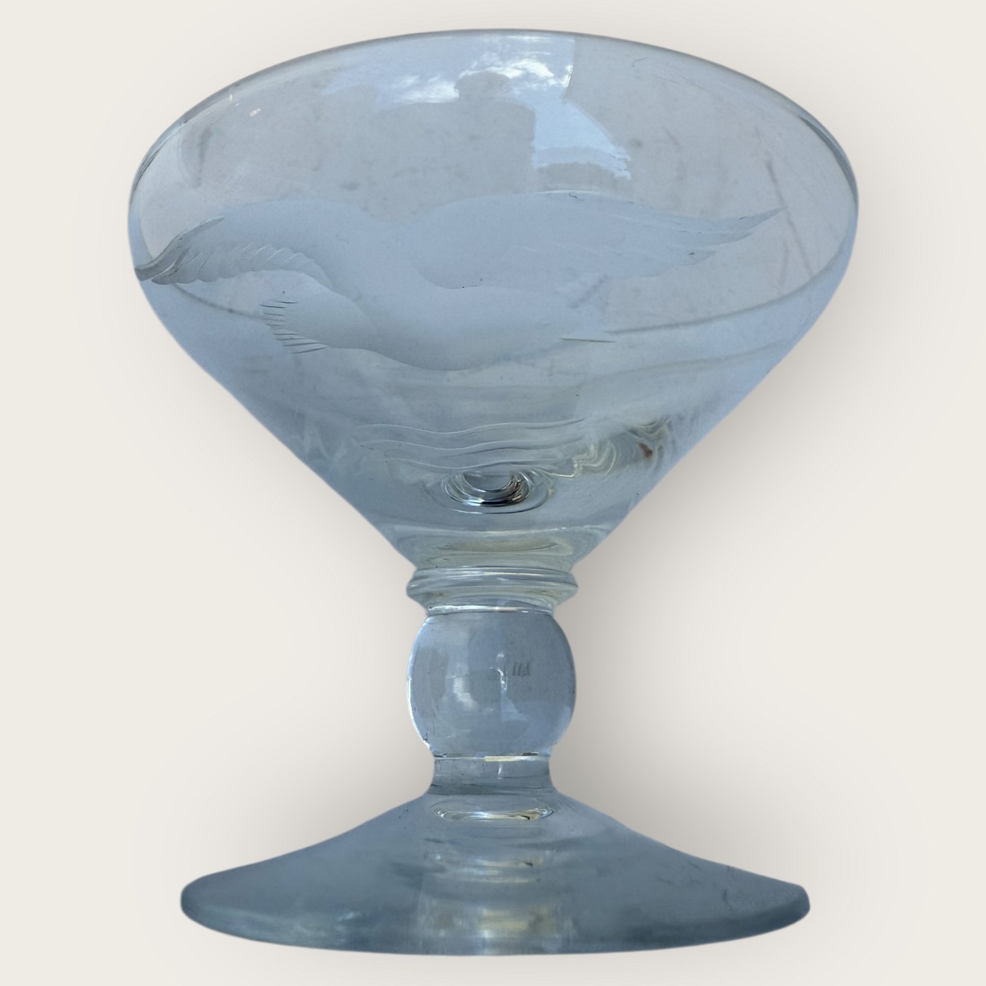 Description: Small seagull glasses without gold rim, height 5.6cm, diameter 6.2cm, good condition