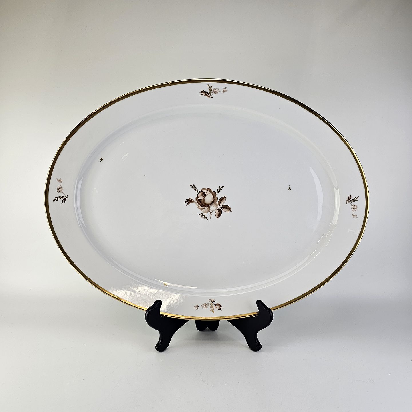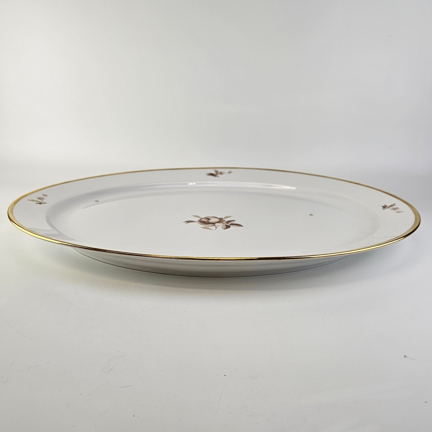 Beskrivelse: Ovalt serveringsfad i porcelæn fra stellet Brun Rose