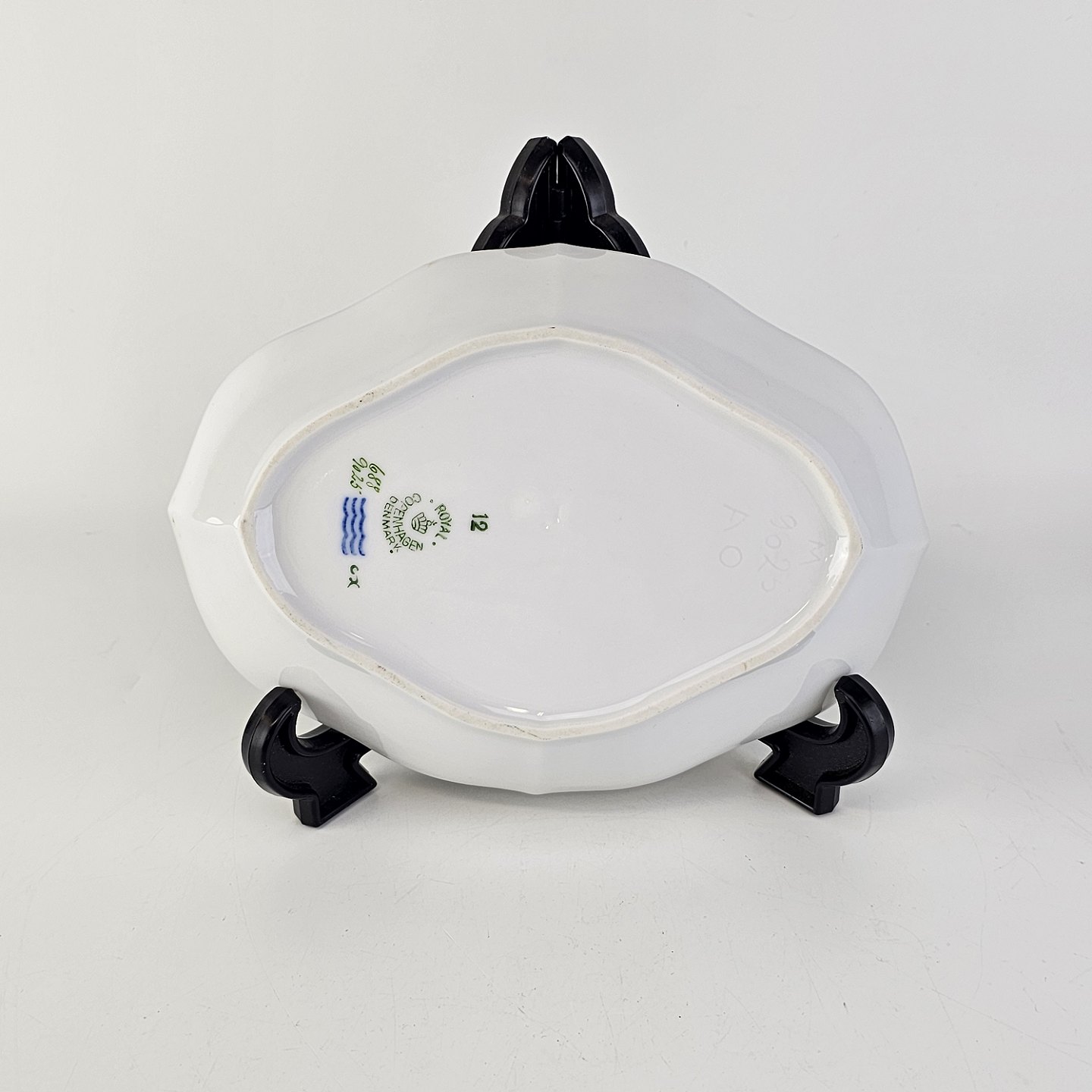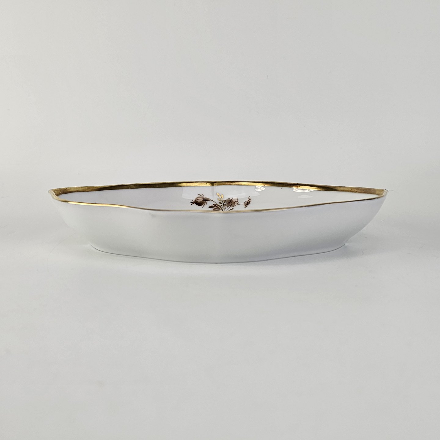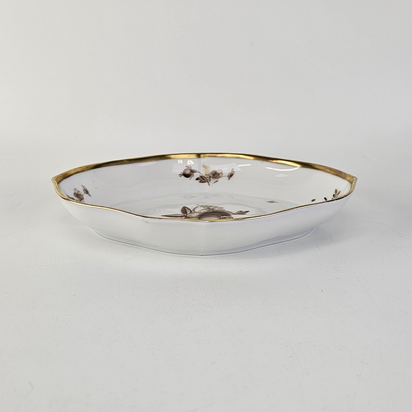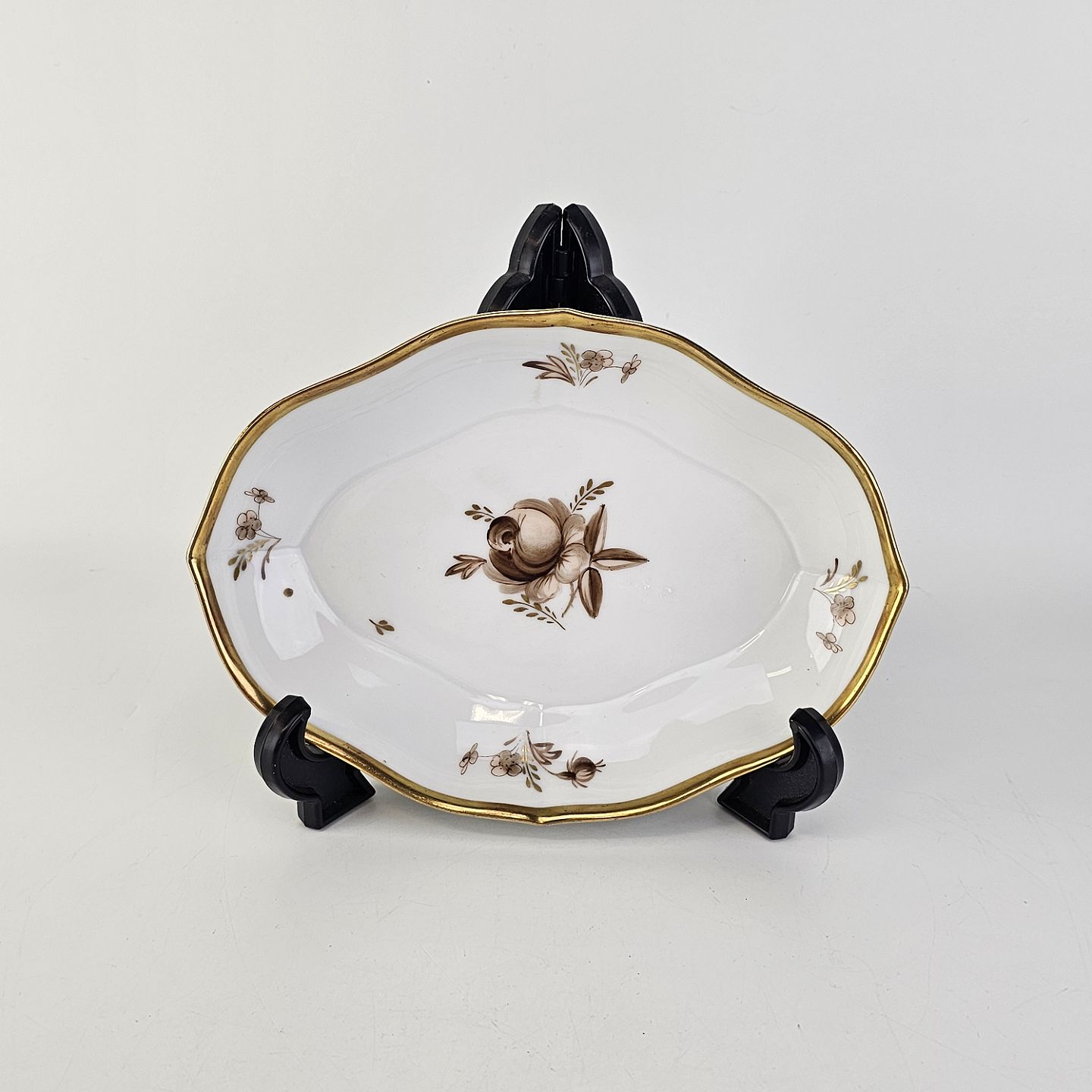 Beskrivelse: Ovalt kantet fad i porcelæn fra stellet Brun Rose
