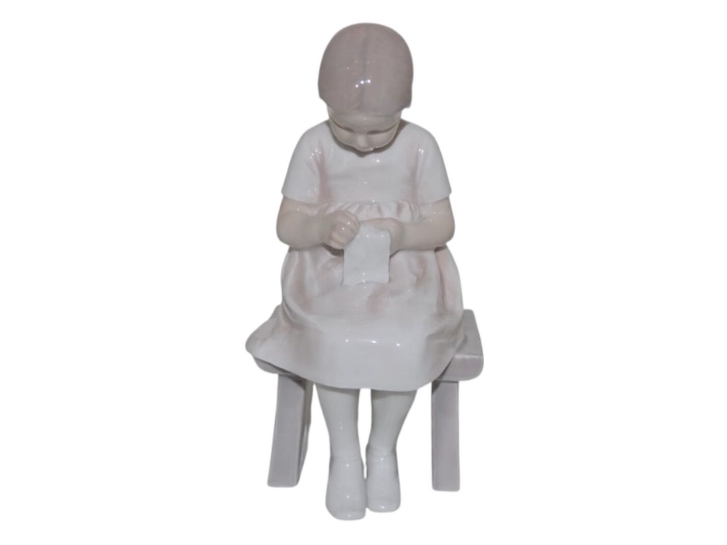 Beskrivelse: Bing & Grøndahl figur, siddende pige.