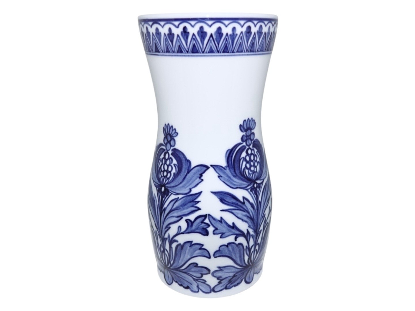 Beskrivelse: Høj og ret sjælden Royal Copenhagen Blå Blomst vase med usædvanlig dekoration.