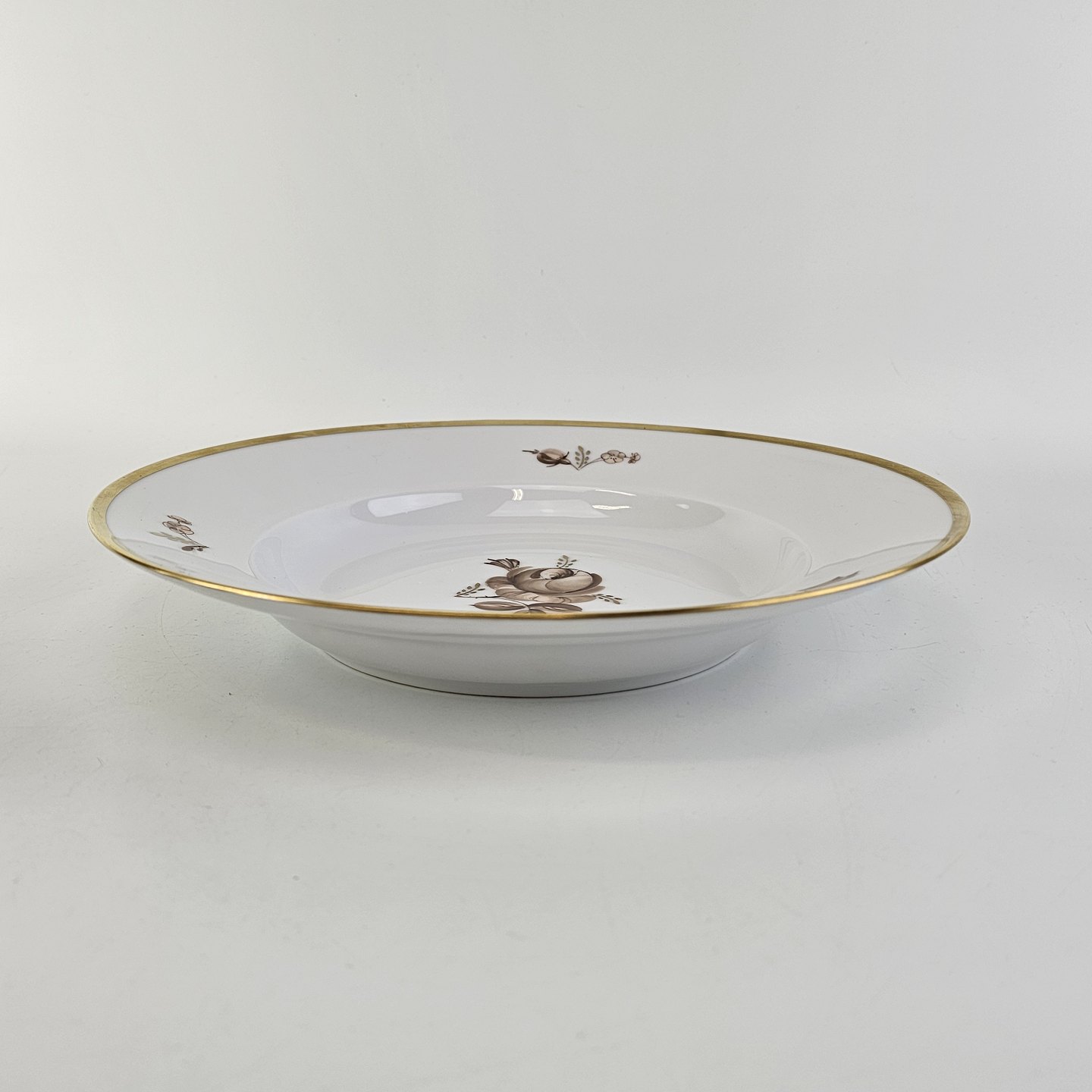 Beskrivelse: Dyb tallerken i porcelæn fra stellet Brun Rose