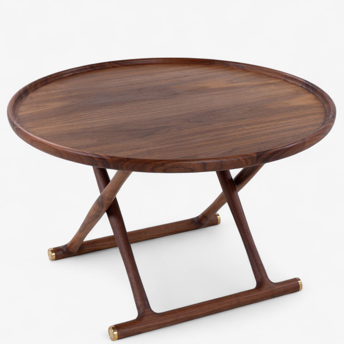 'Ægypterbordet' i valnød med messingdetaljer. Mærket fra producenten. Formgivet i 1940.