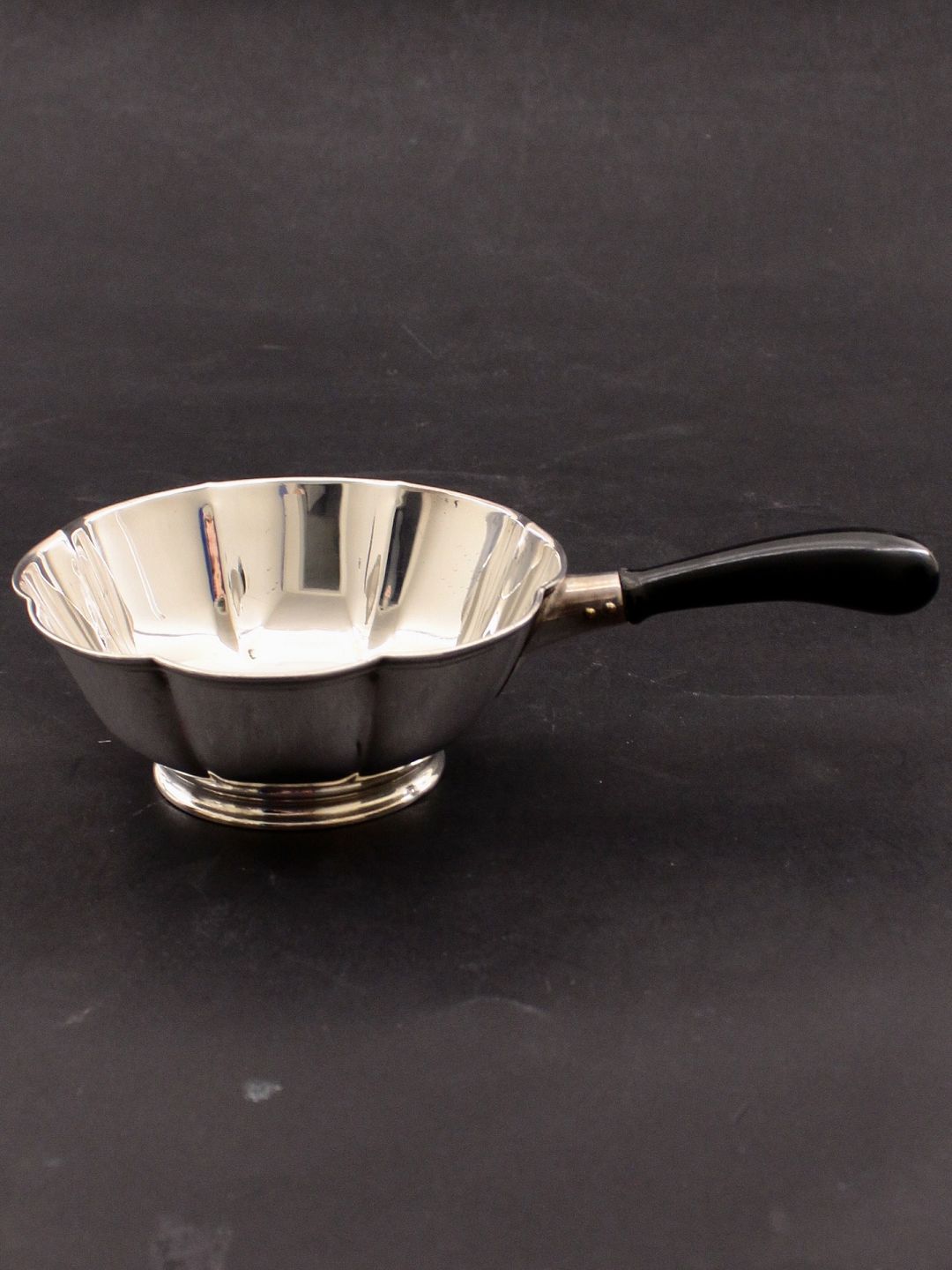 : Tretårnet sølv serverings skål med bølget kant D. 13 cm. emne nr. 619337