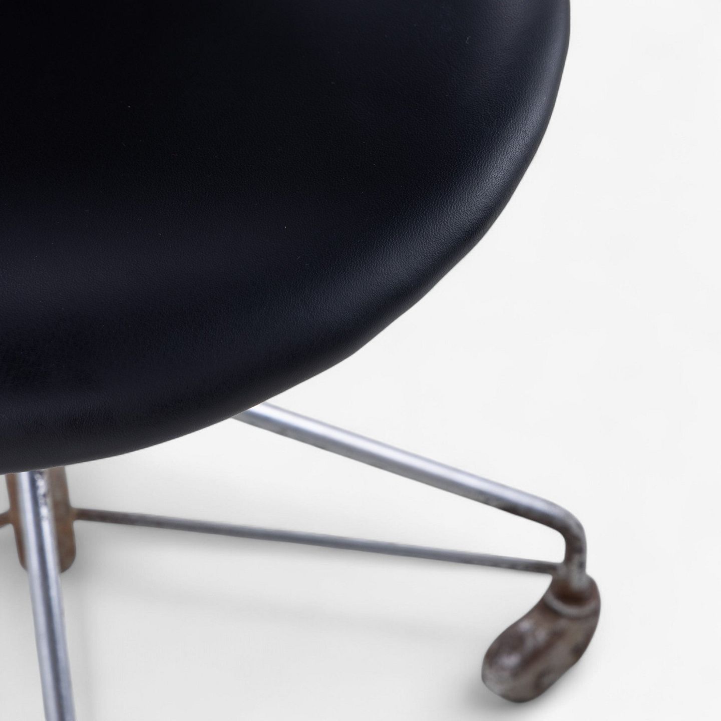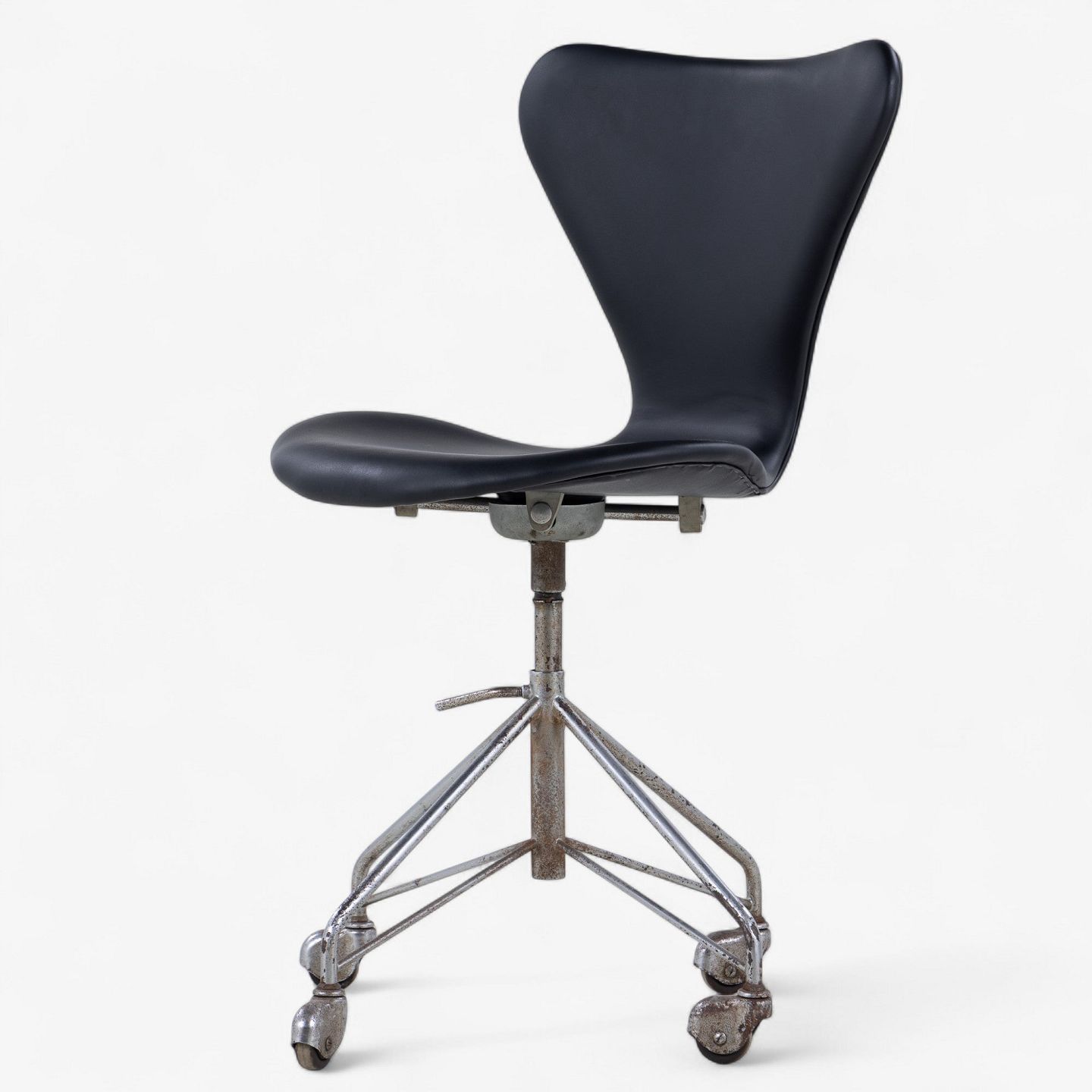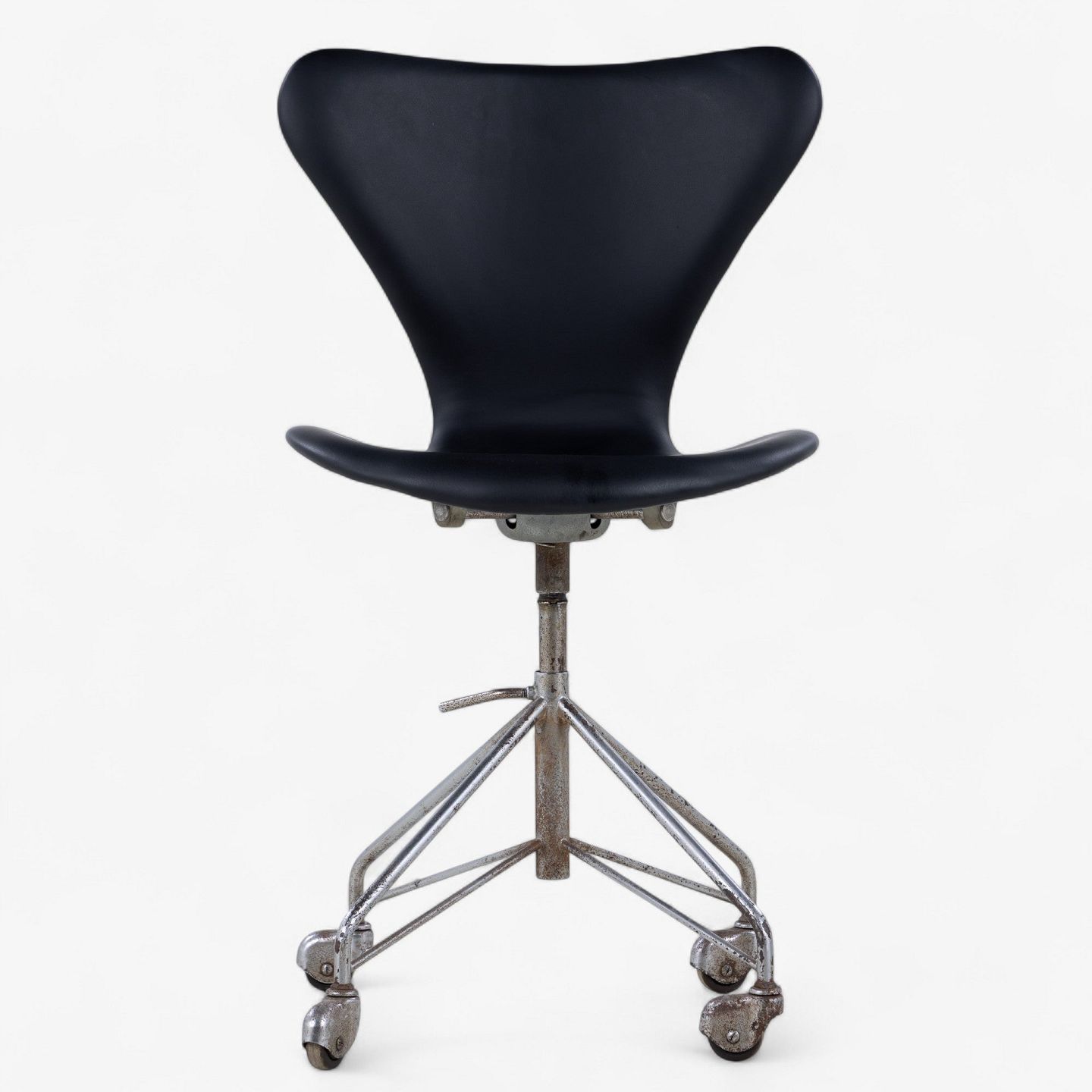 AJ 3117 - 'Syver'-kontorstol i sort læder på original patineret stel. Mærket fra producent.