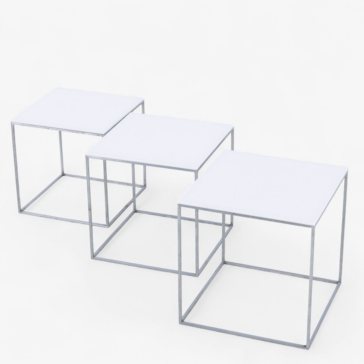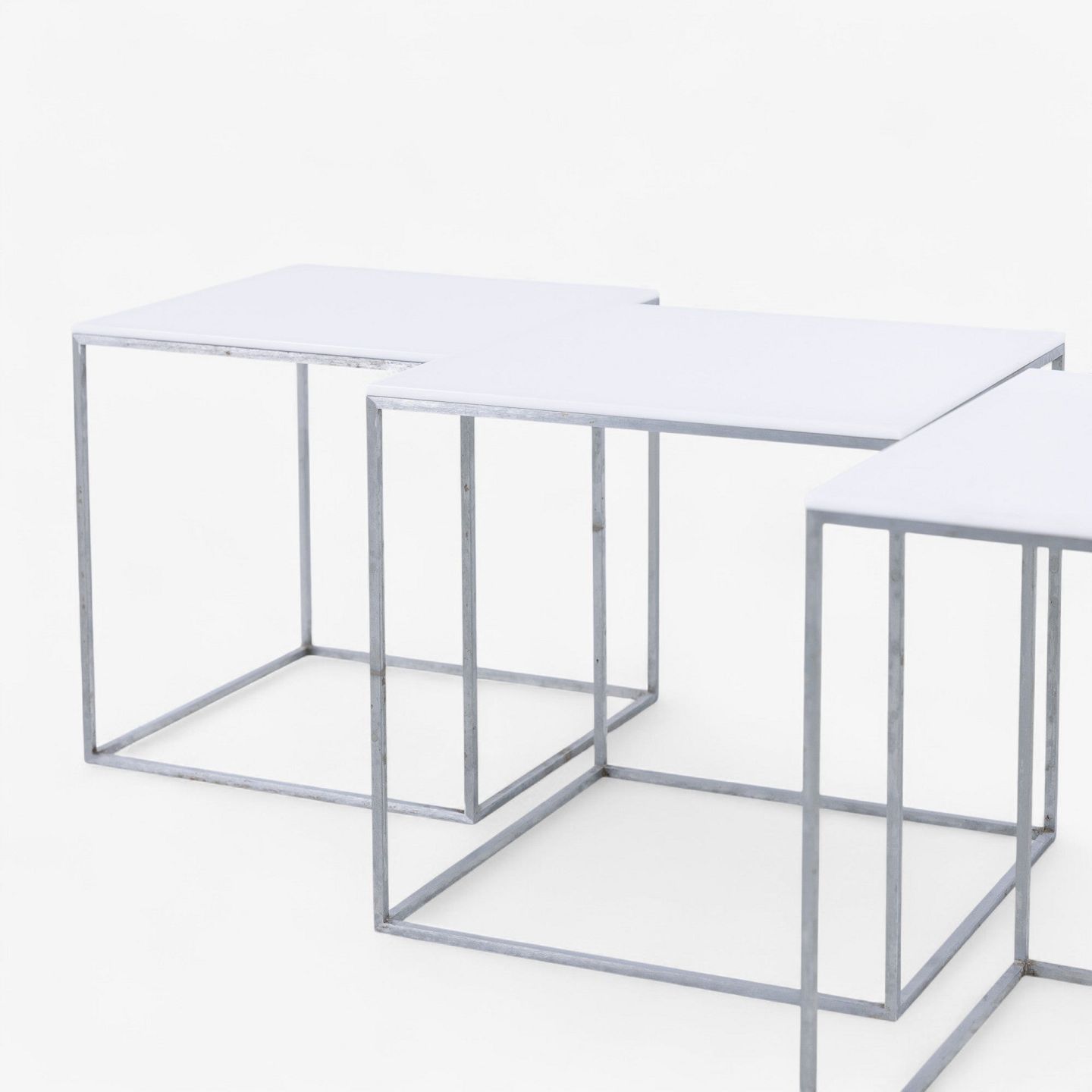 PK 71 - Indskudsborde i stål med top i hvid formica (3 stk).