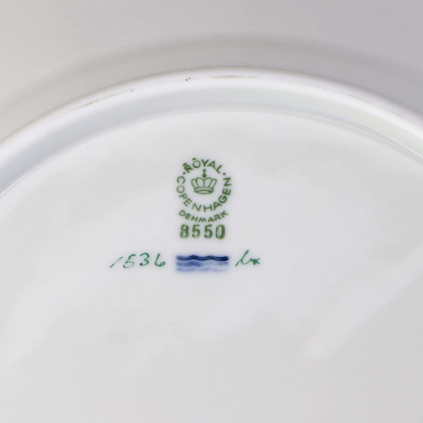 Beskrivelse: Kongelig frokosttallerken i porcelæn fra stellet Palads. Nr. 1536/8550
