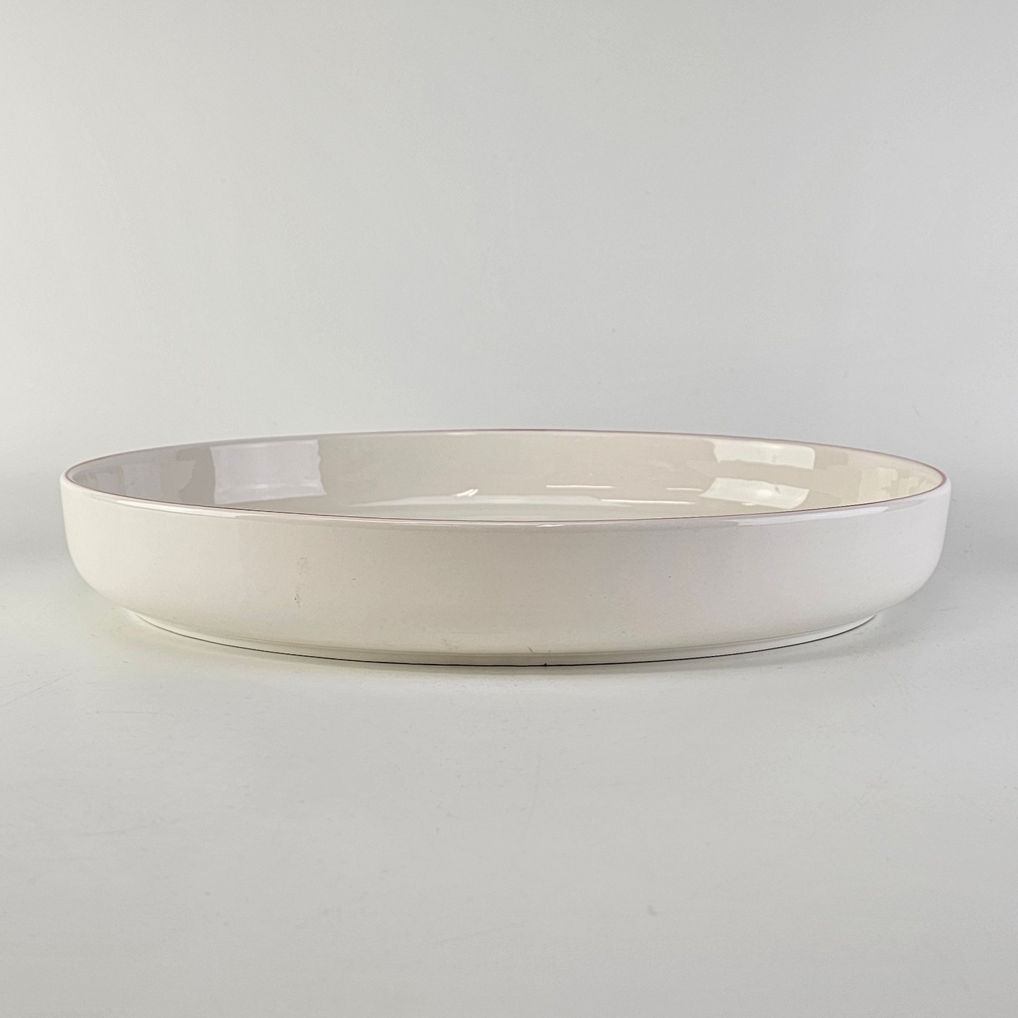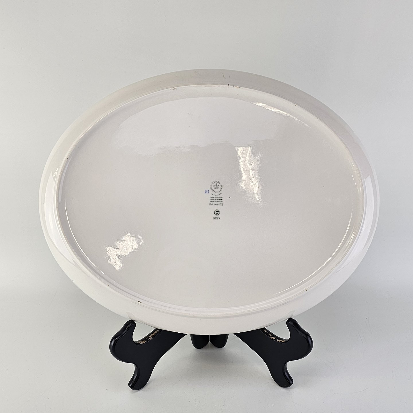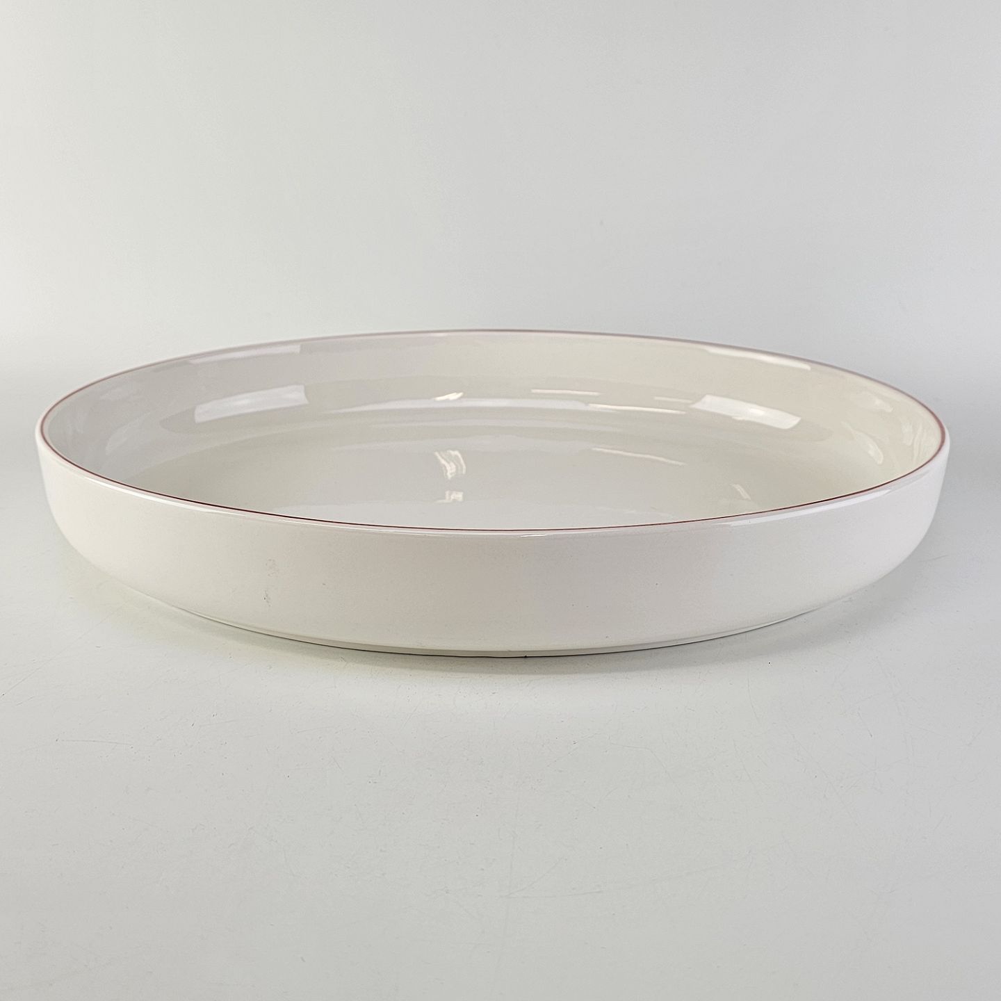 Beskrivelse: Stort ovalt fad i fajance fra stellet 4 All Seasons med rød kant