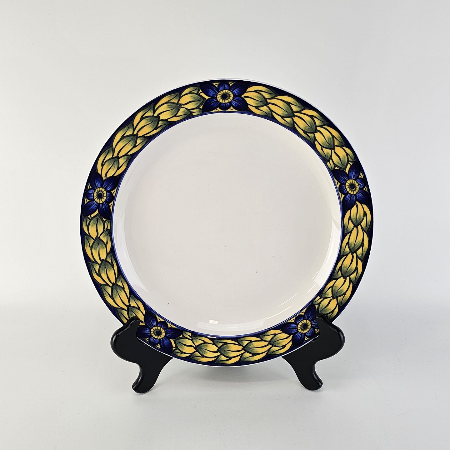 Blue Pheasant er fremstillet i glat lys fajance med motiv af en fasan med blå og gule farver. Kanterne er dekoreret med gule kornakse og blå blomster