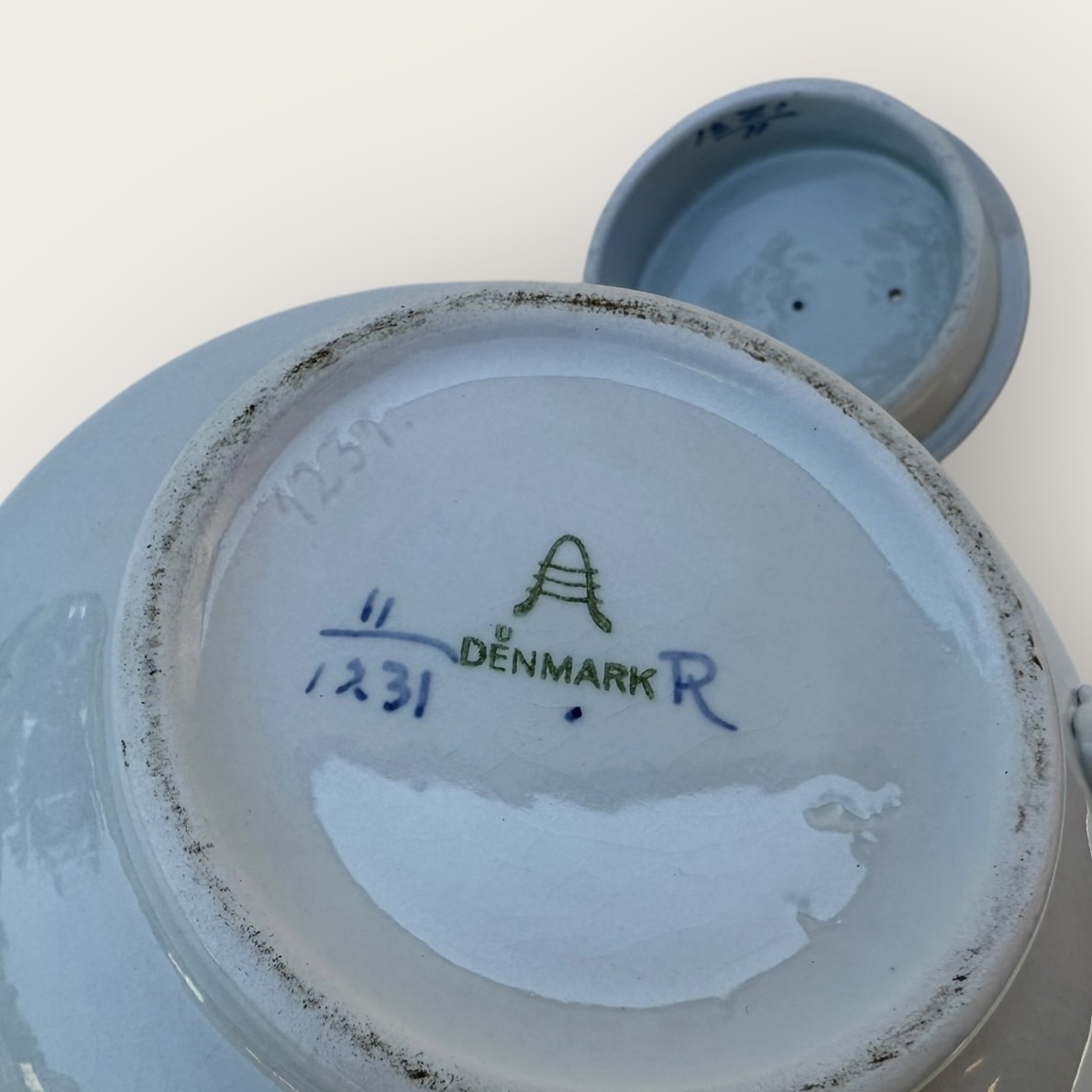 Beskrivelse: Royal Copenhagen, Trankebar, Tekande #11/ 1231, Mål. ca. 11x22x13cm, Design Christian Joachim *Lidt krakeleringer under glasuren ellers pæn stand*