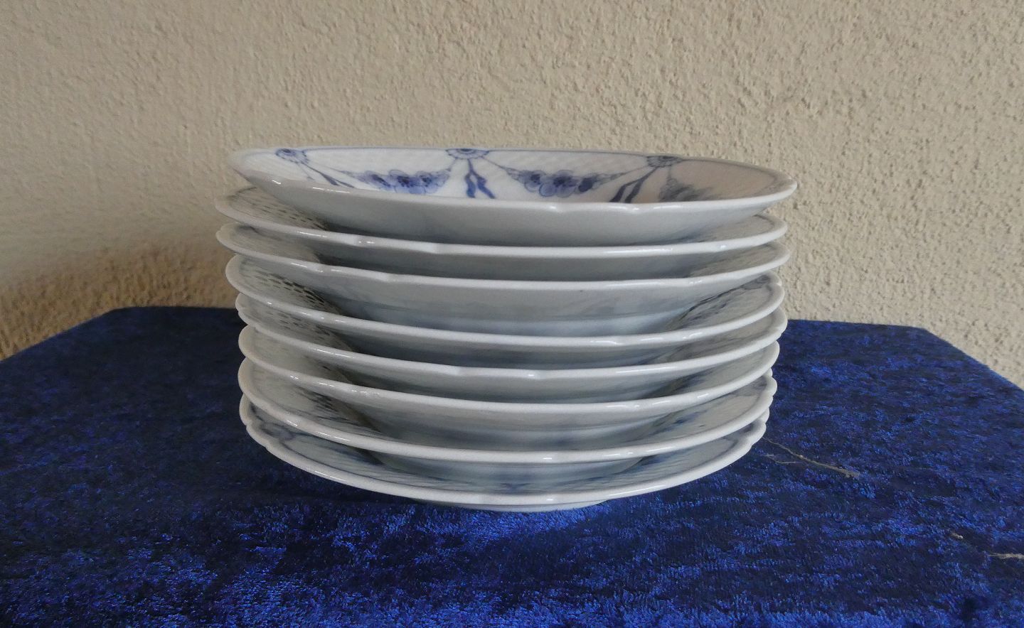Sæt på 8 sidetallerkener eller kagetallerkener i 1.sort. fra perioden 1915-1948, og i pæn, brugt stand.