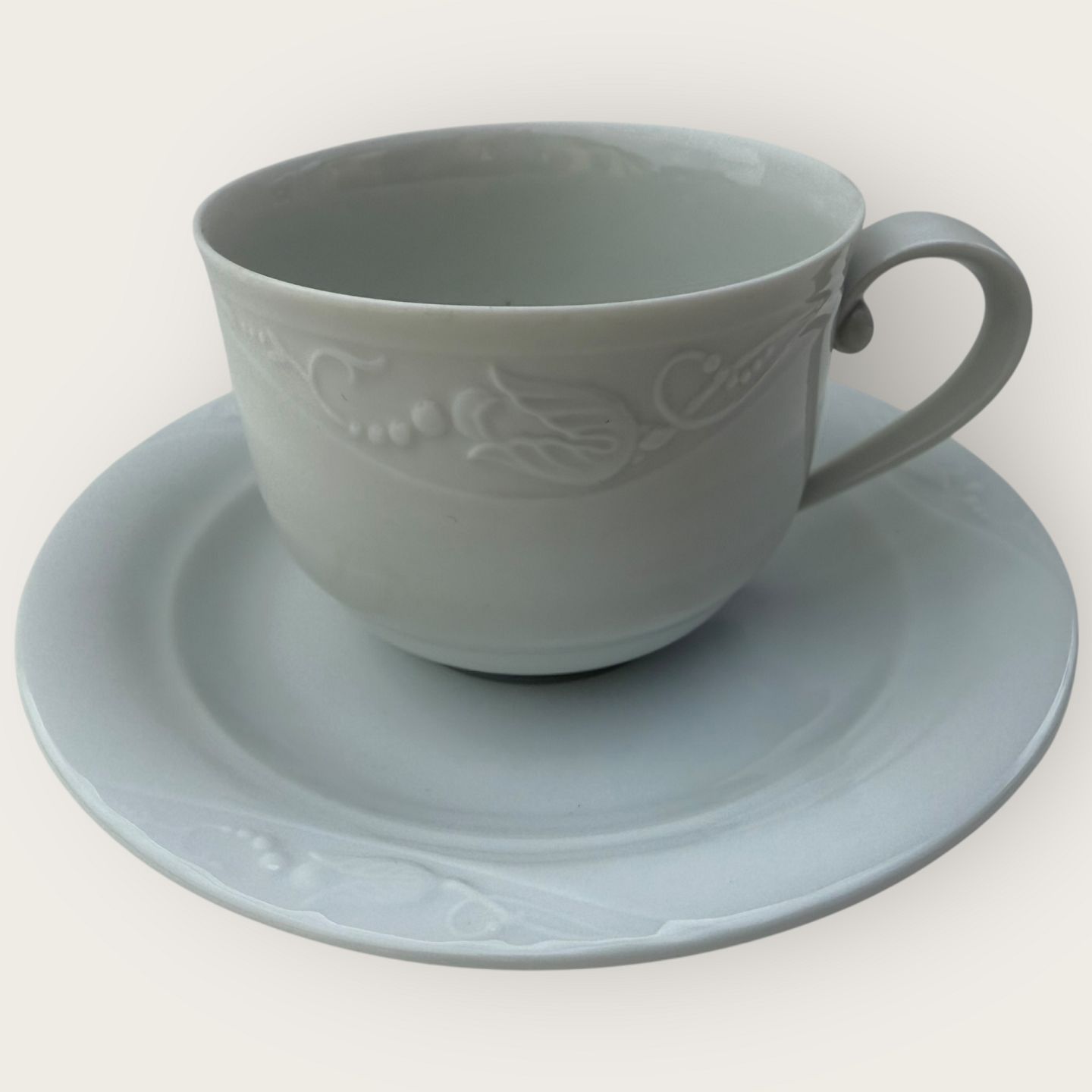 Beskrivelse: Royal Copenhagen, Hvid Magnolia, kaffekop, #072, 3. sortering, pæn stand, 8cm i diameter, 6,5cm høj, Design Flemming Eskildsen
