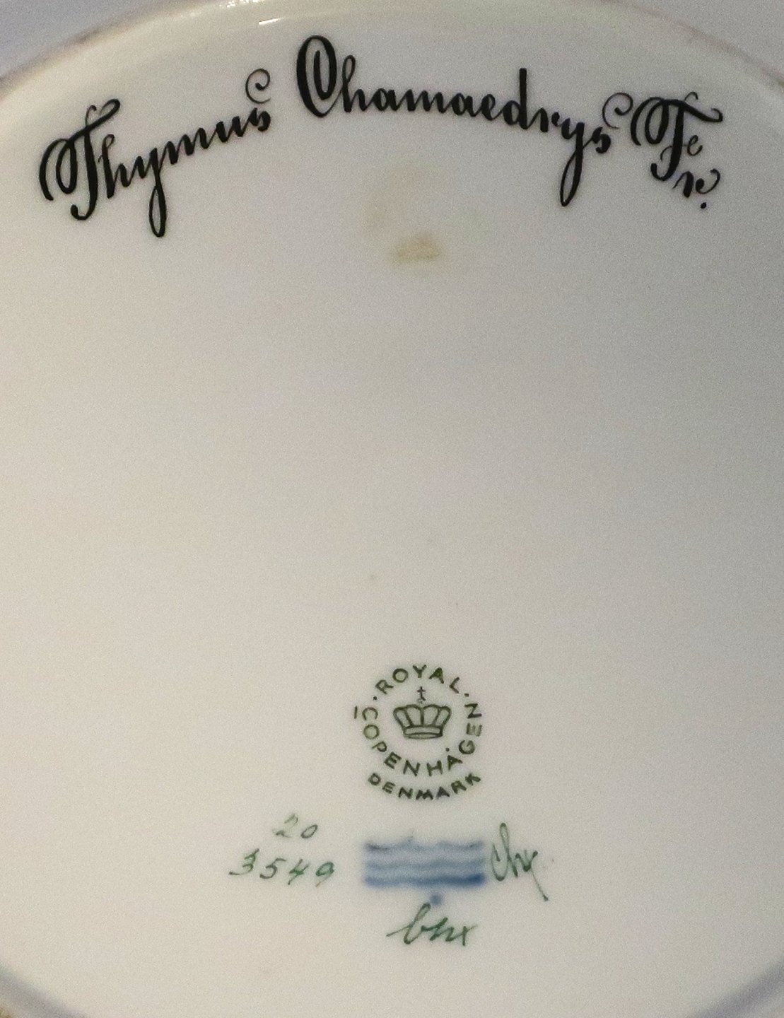 Royal Copenhagen, Flora Danica. Middags tallerken. Design #3549. Diameter 25 cm. (1 sortering). Thymus chamaedrys Fr