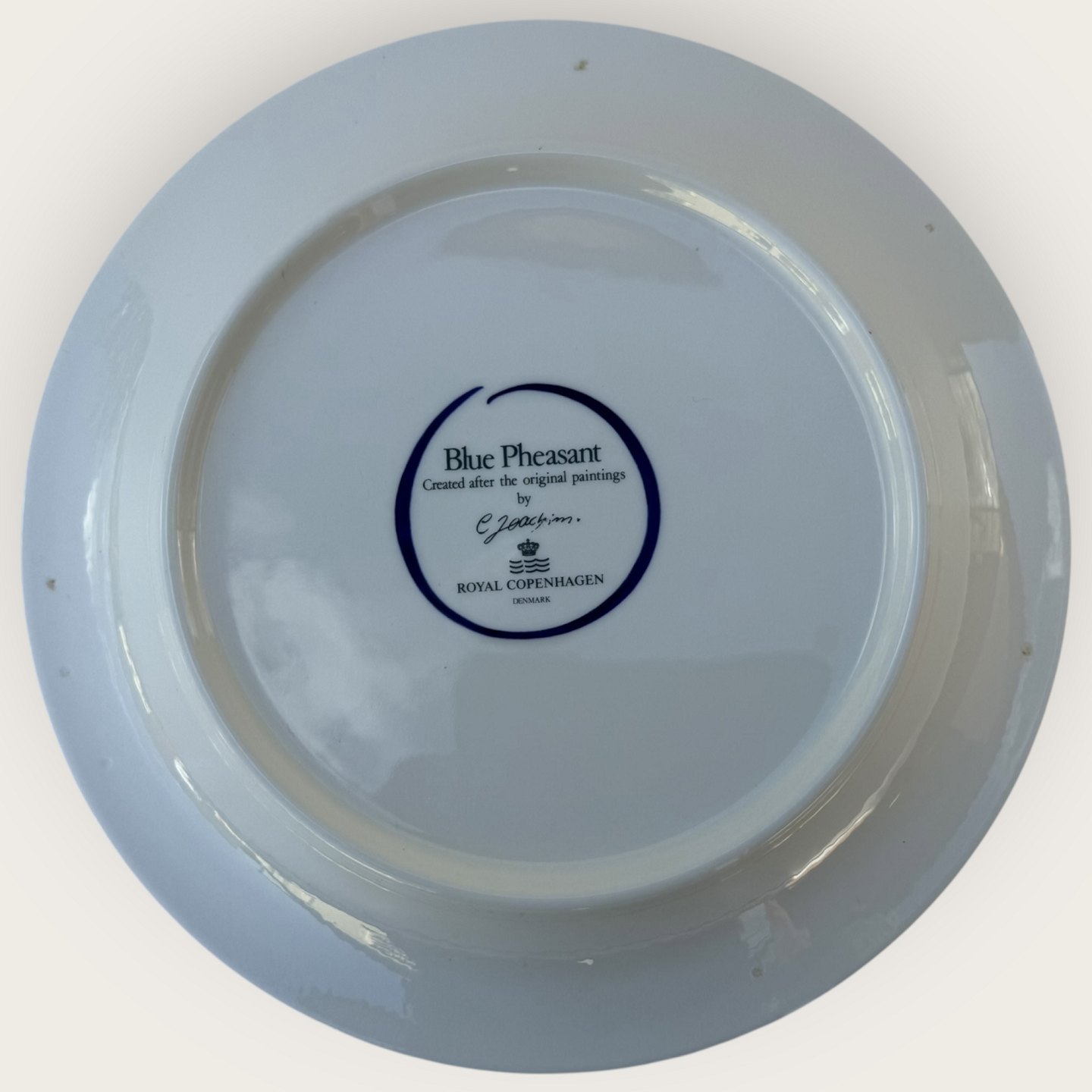 Beskrivelse: Royal Copenhagen, Blå fasan, Blue Pheasant, Middags tallerken, 24cm i diameter, 3. sortering, Nyfortolkning af Christians Joachim's design *Pæn stand*