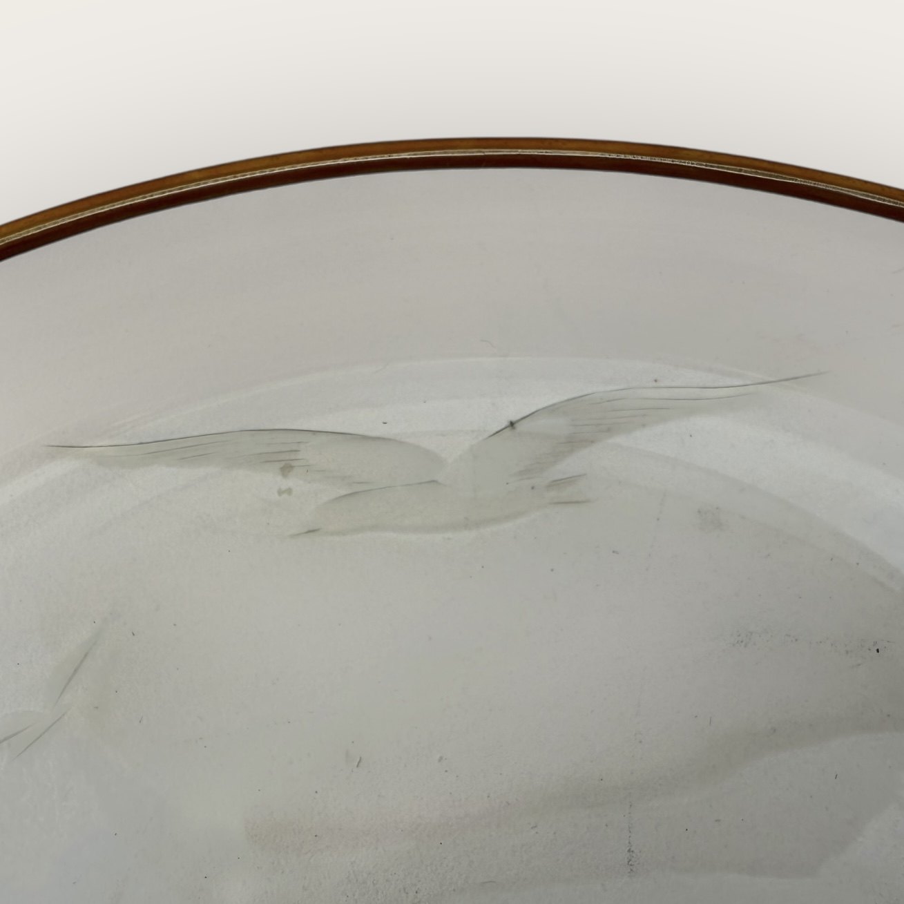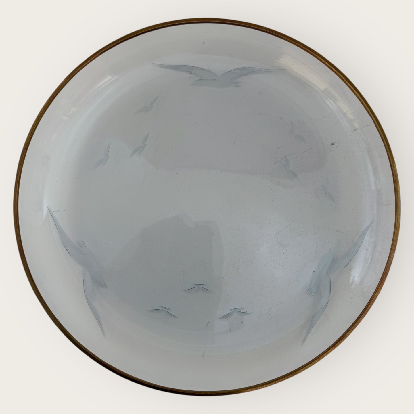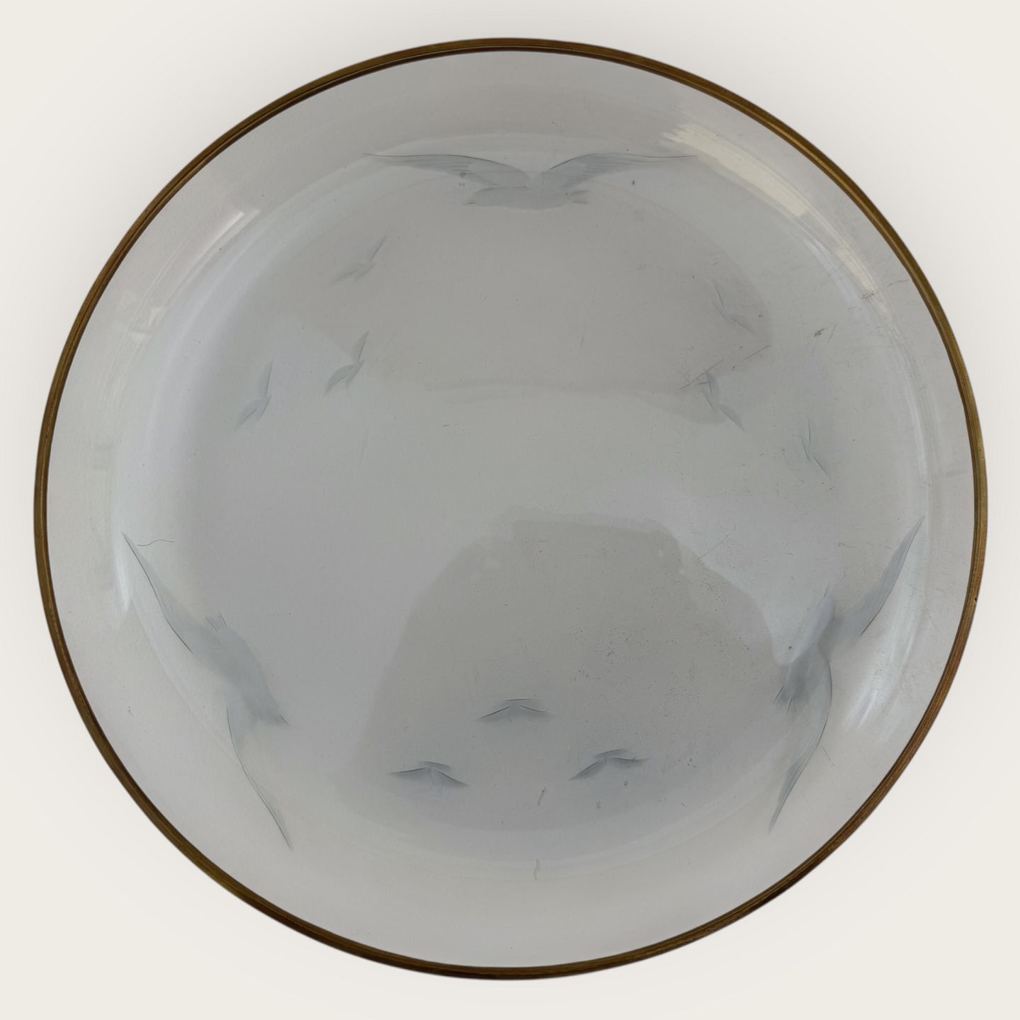 Beskrivelse: Lyngby Glas, Serverings fad, Måge Krystalglas med slibninger og guldkant, 28,8cm i diameter *Pæn stand*