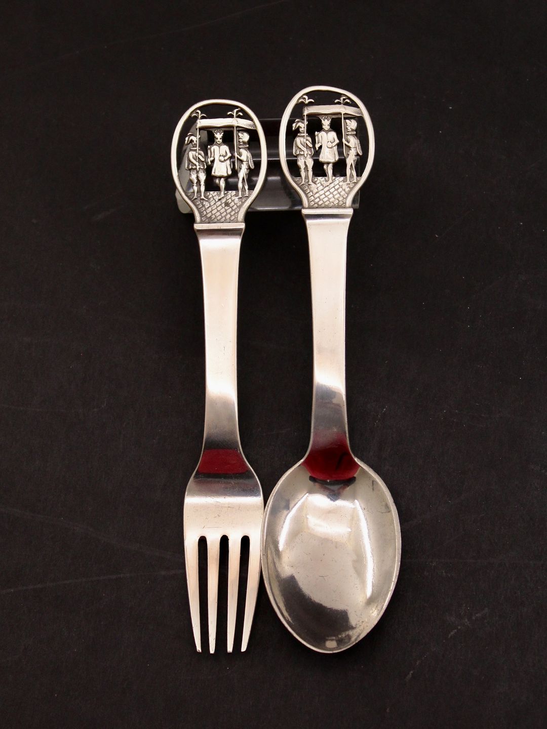 : H C Andersen sæt barne bestik 14,5 cm. tretårnet sølv ingen graveringer emne nr. 620554